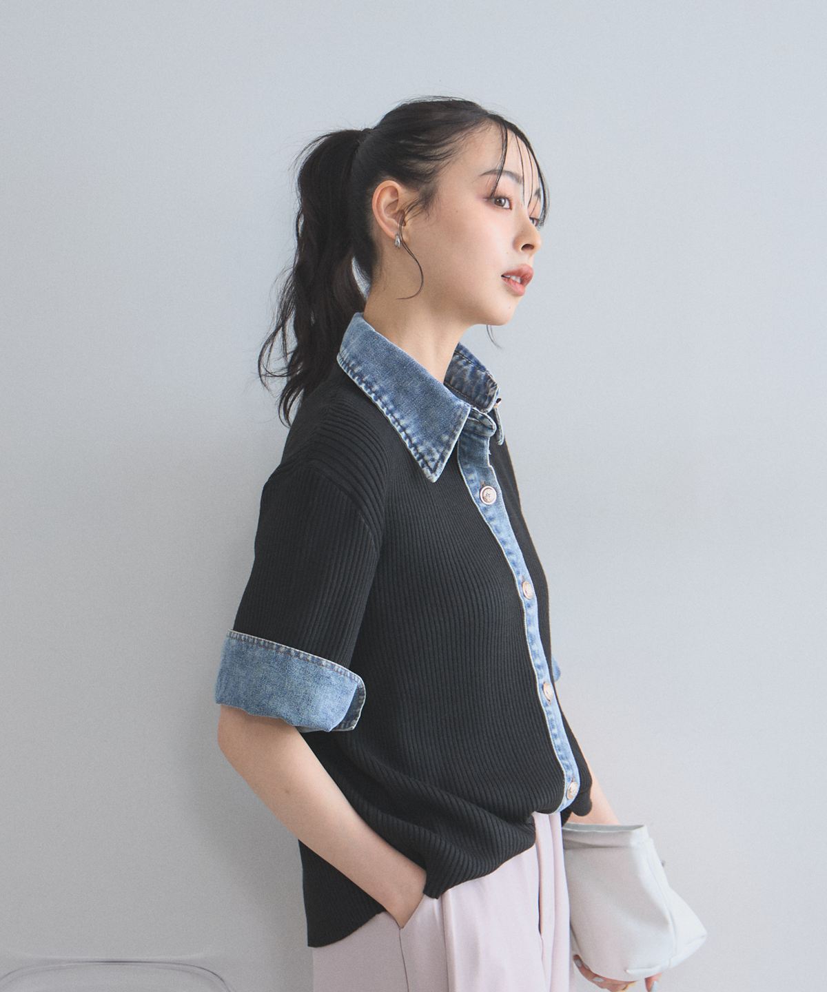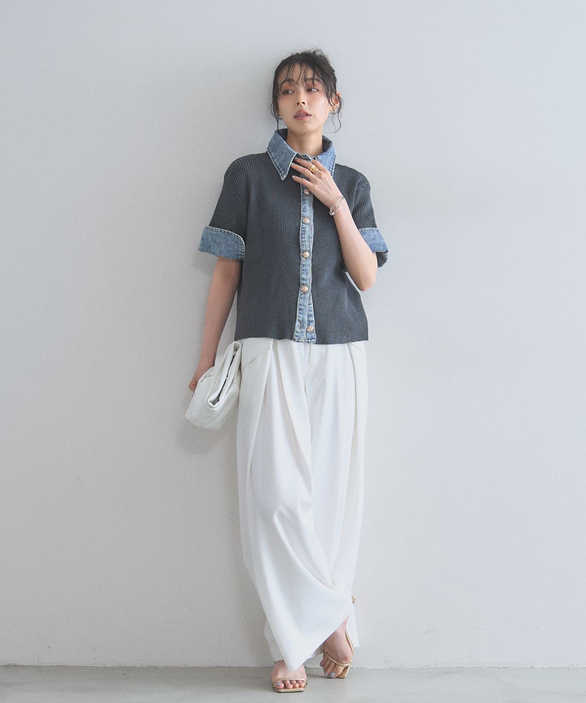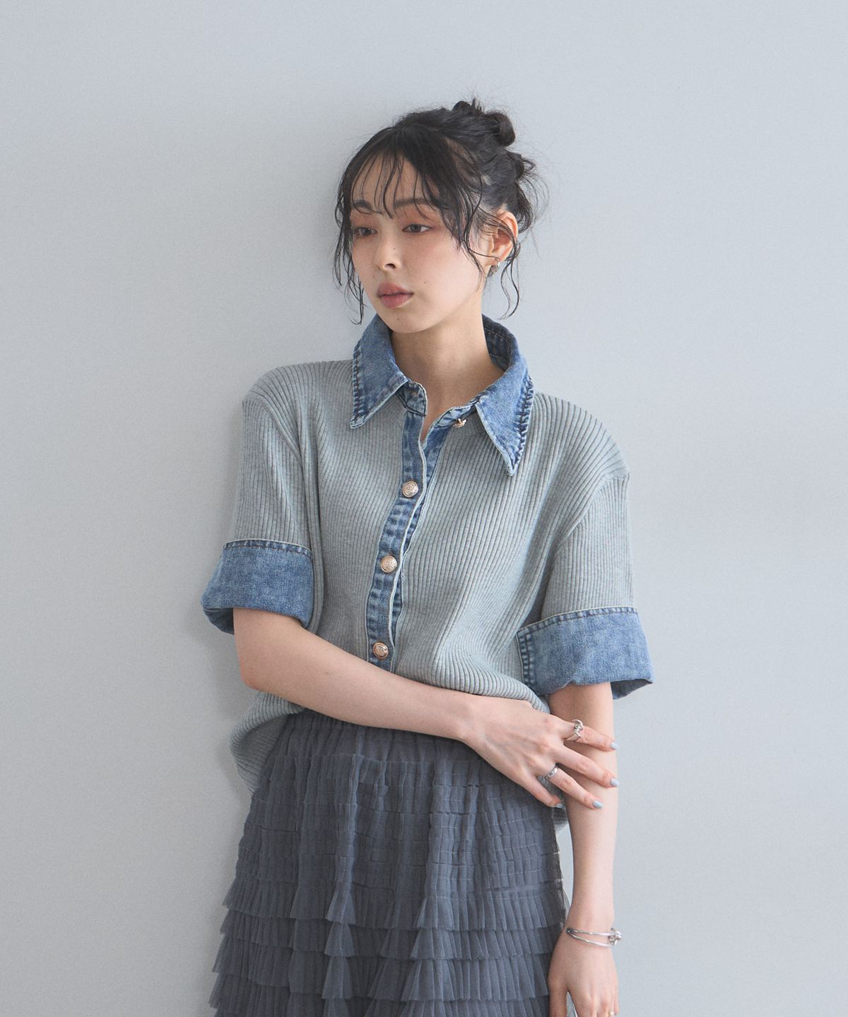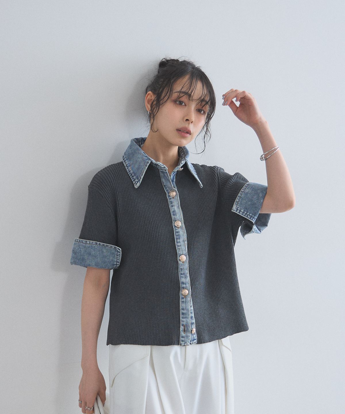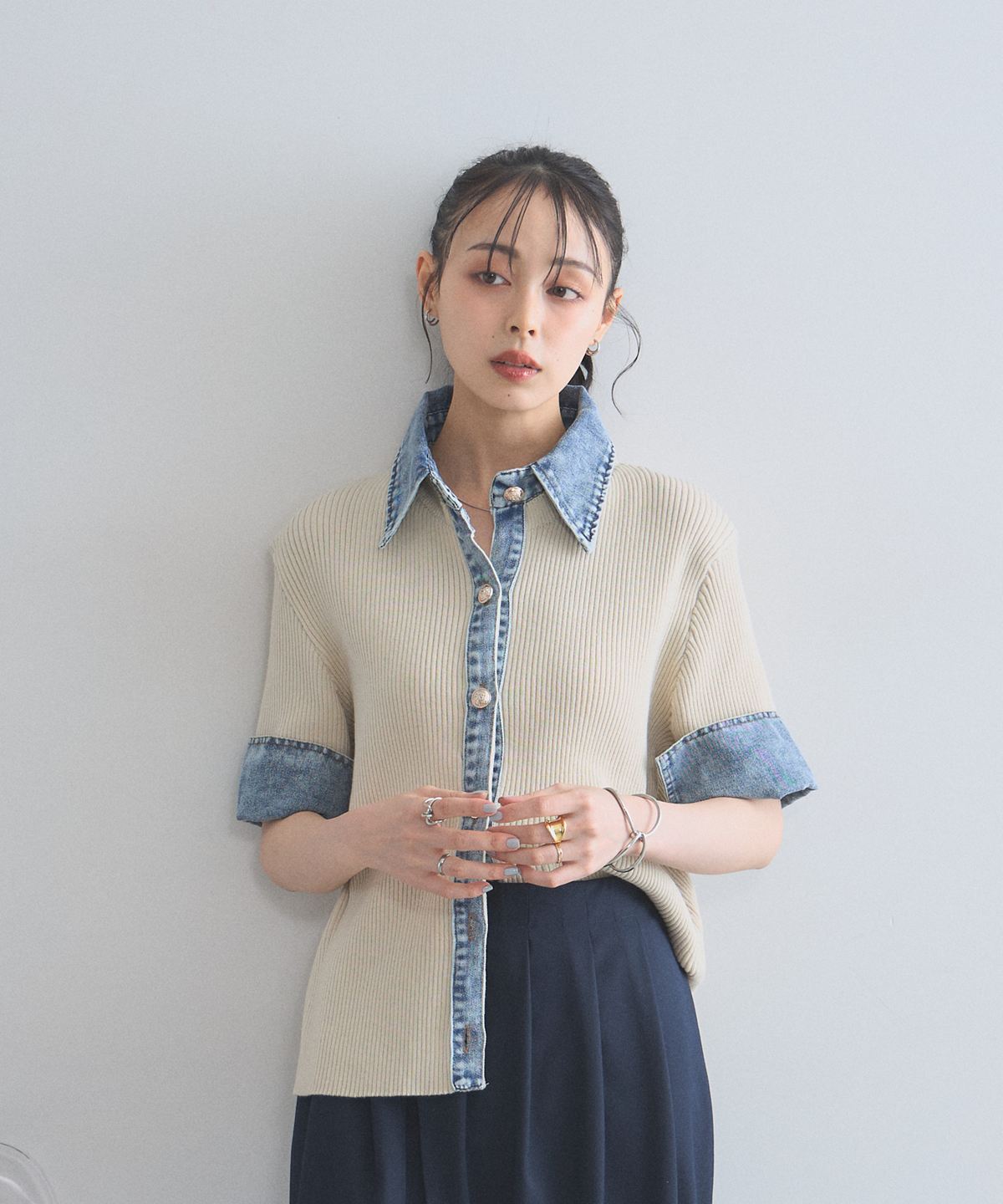 リブの柔らかな素材感と、デニムのカジュアルな表情を掛け合わせた1枚です。