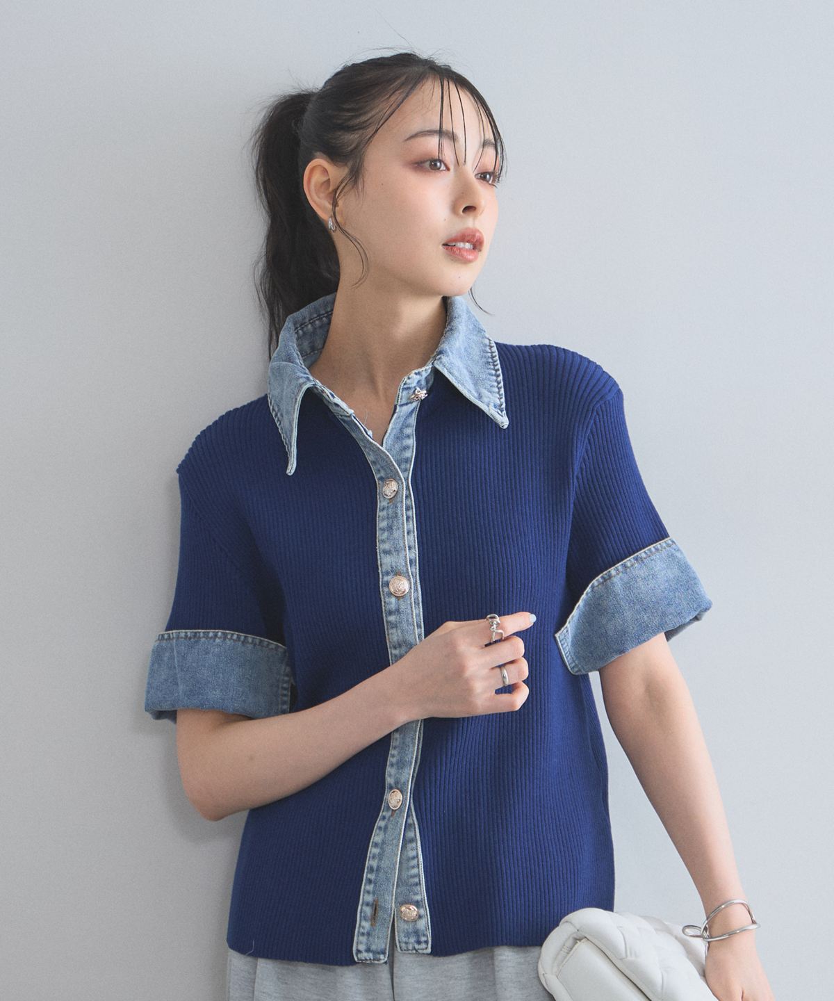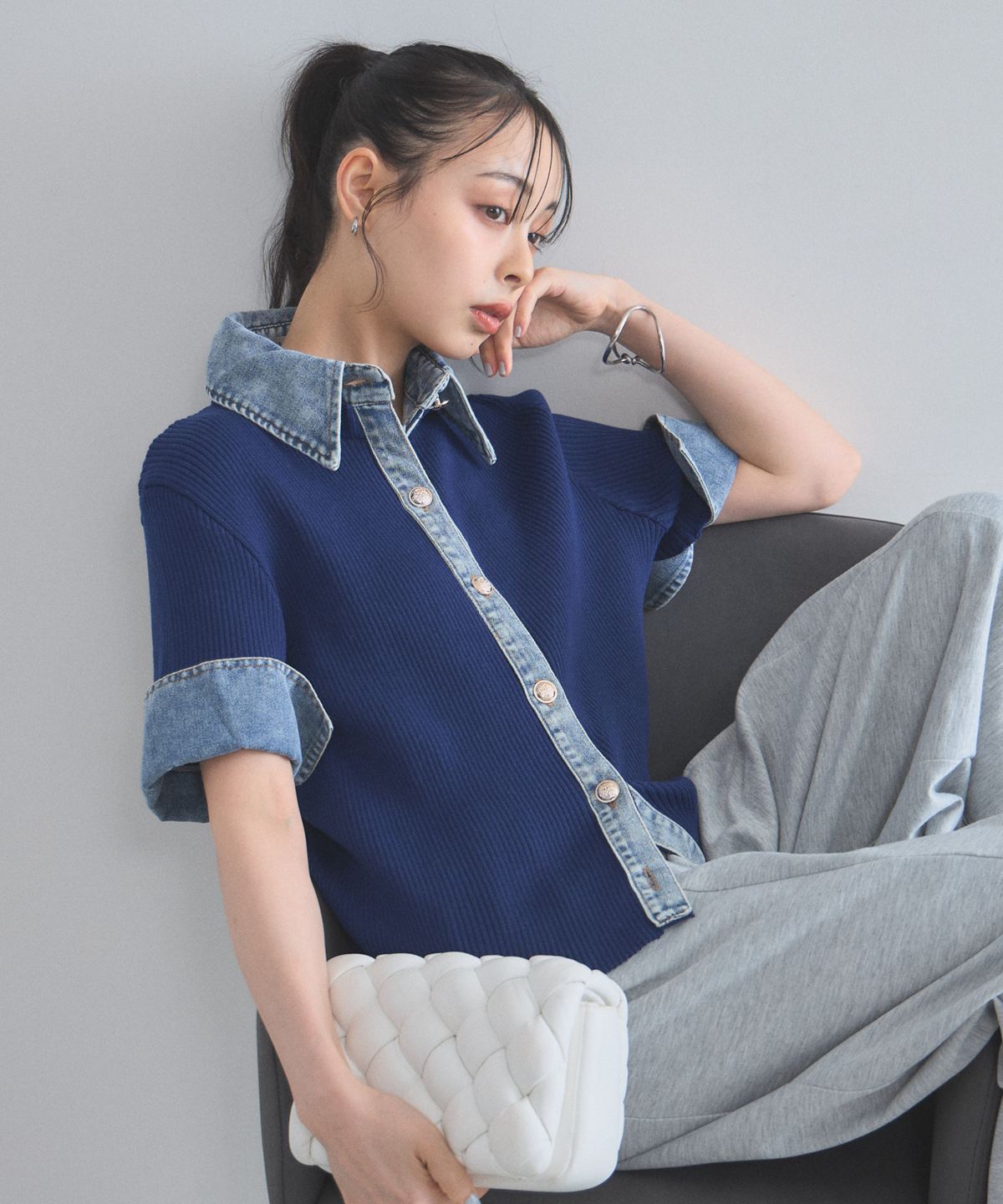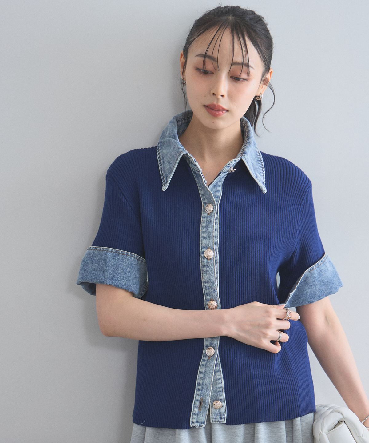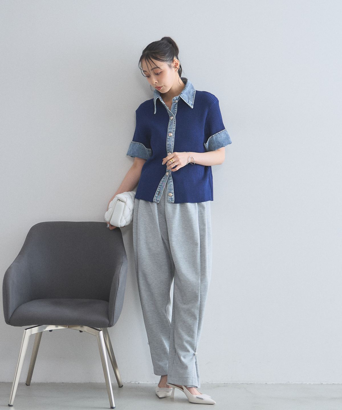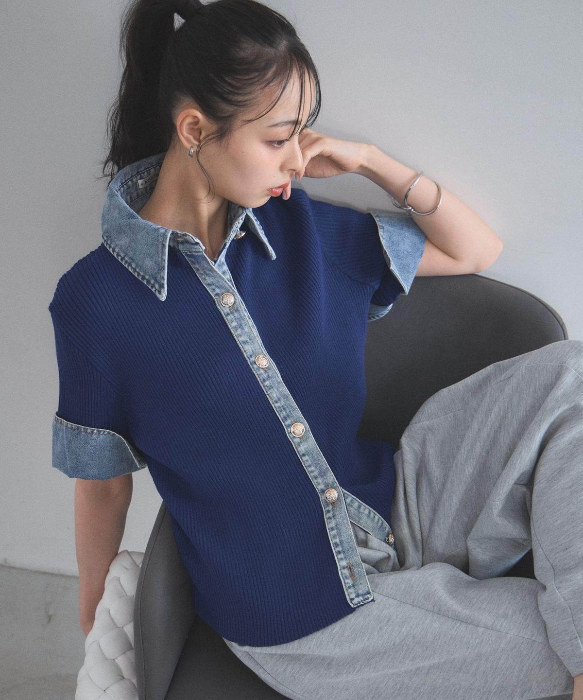 リブの柔らかな素材感と、デニムのカジュアルな表情を掛け合わせた1枚です。