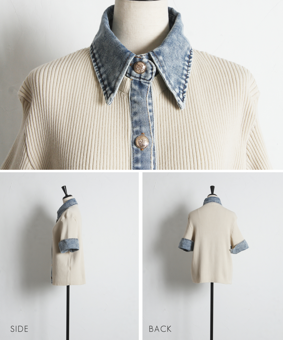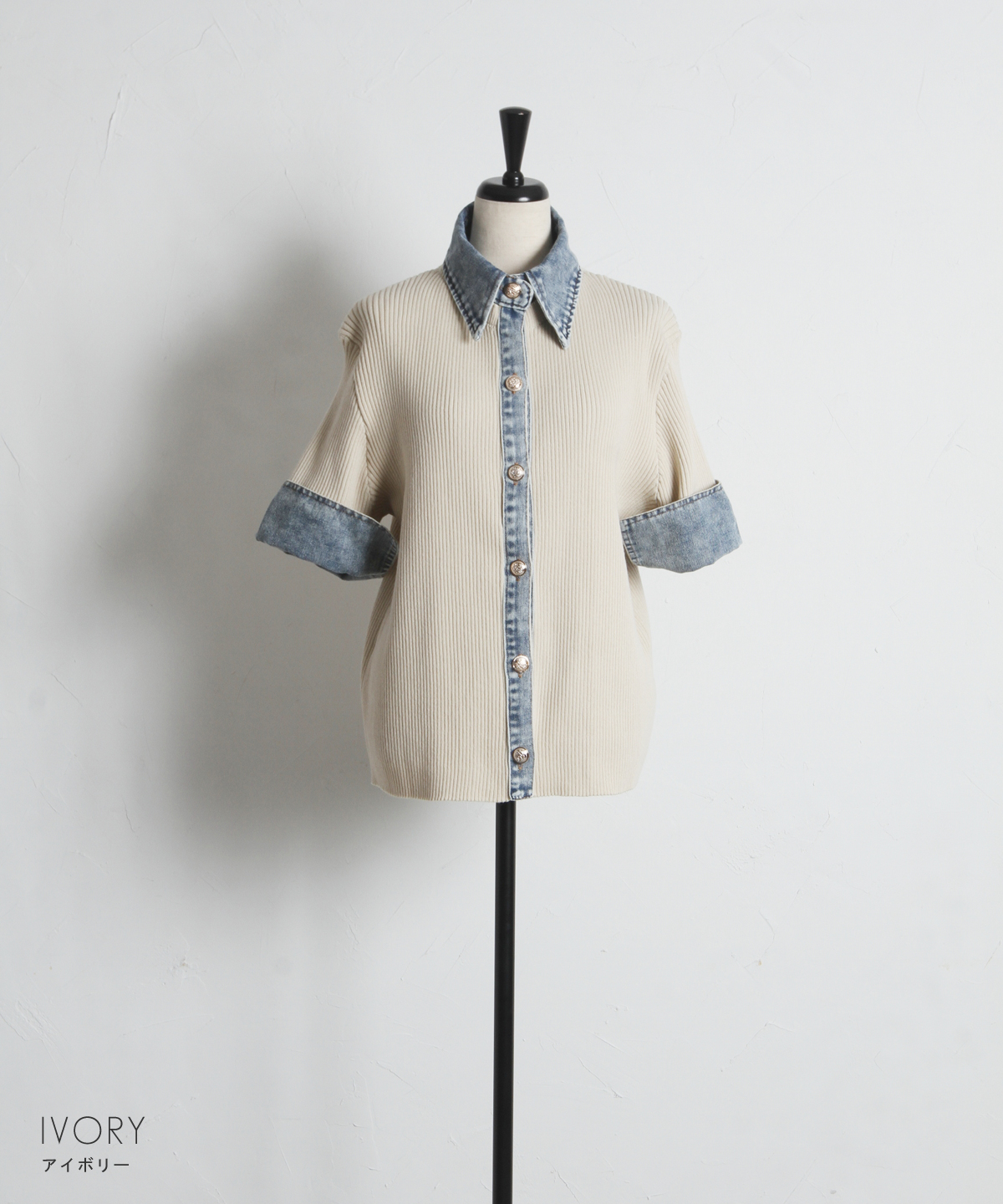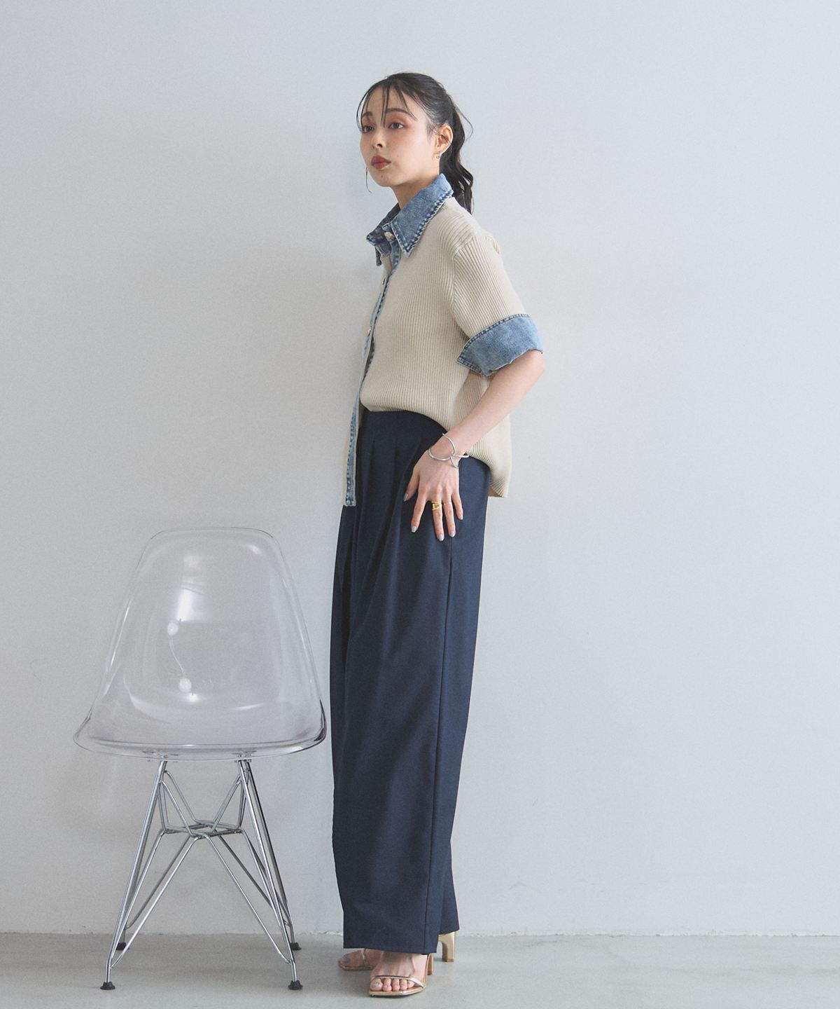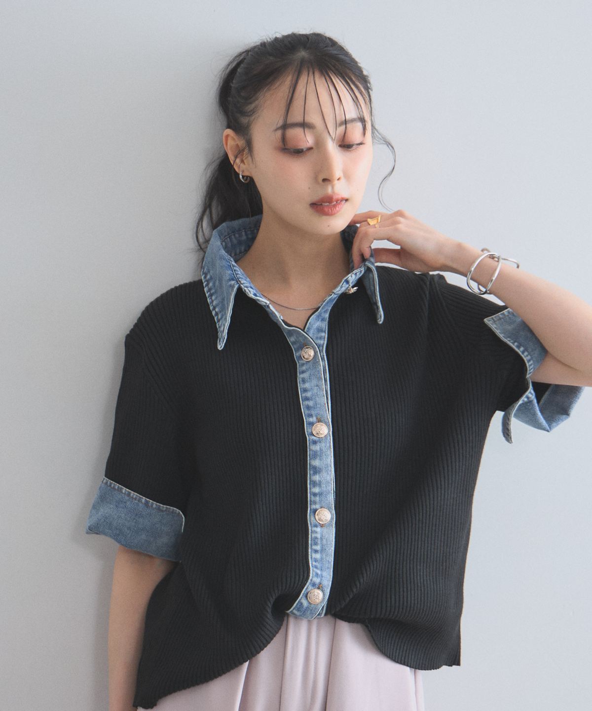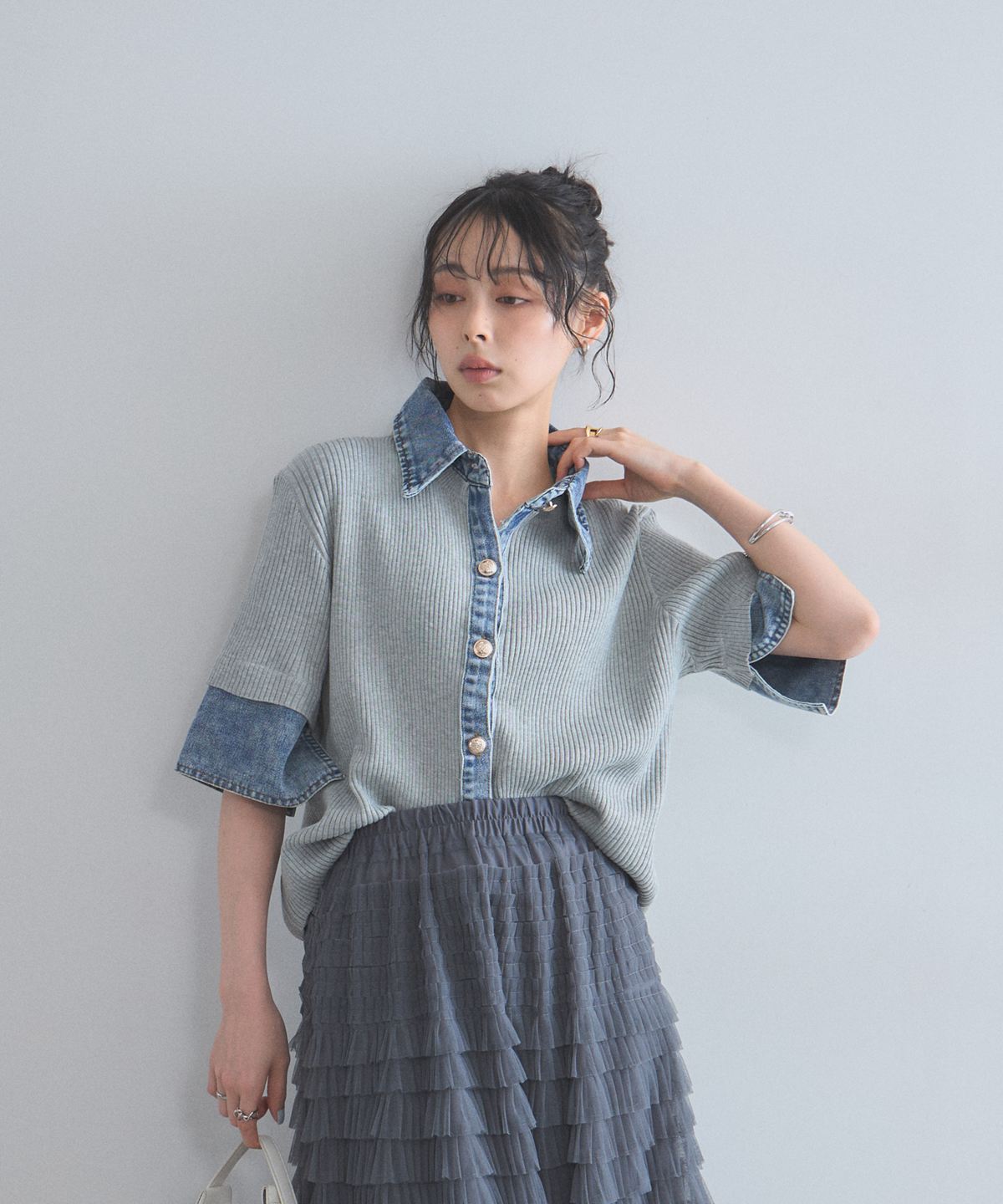リブの柔らかな素材感と、デニムのカジュアルな表情を掛け合わせた1枚です。