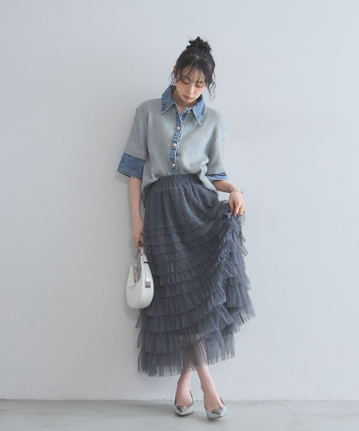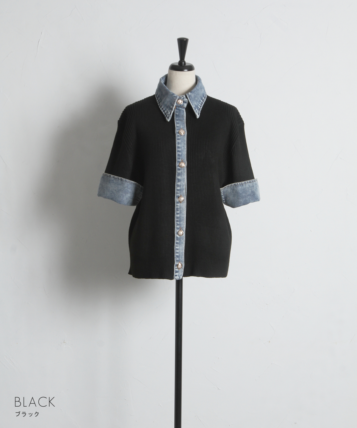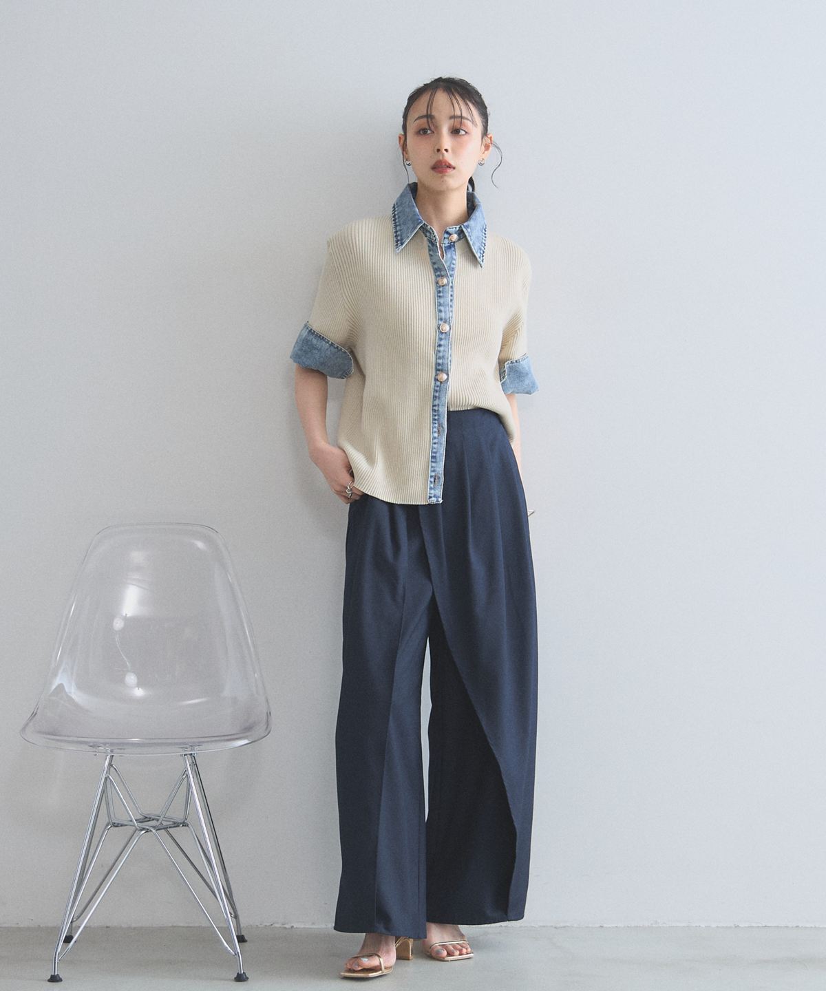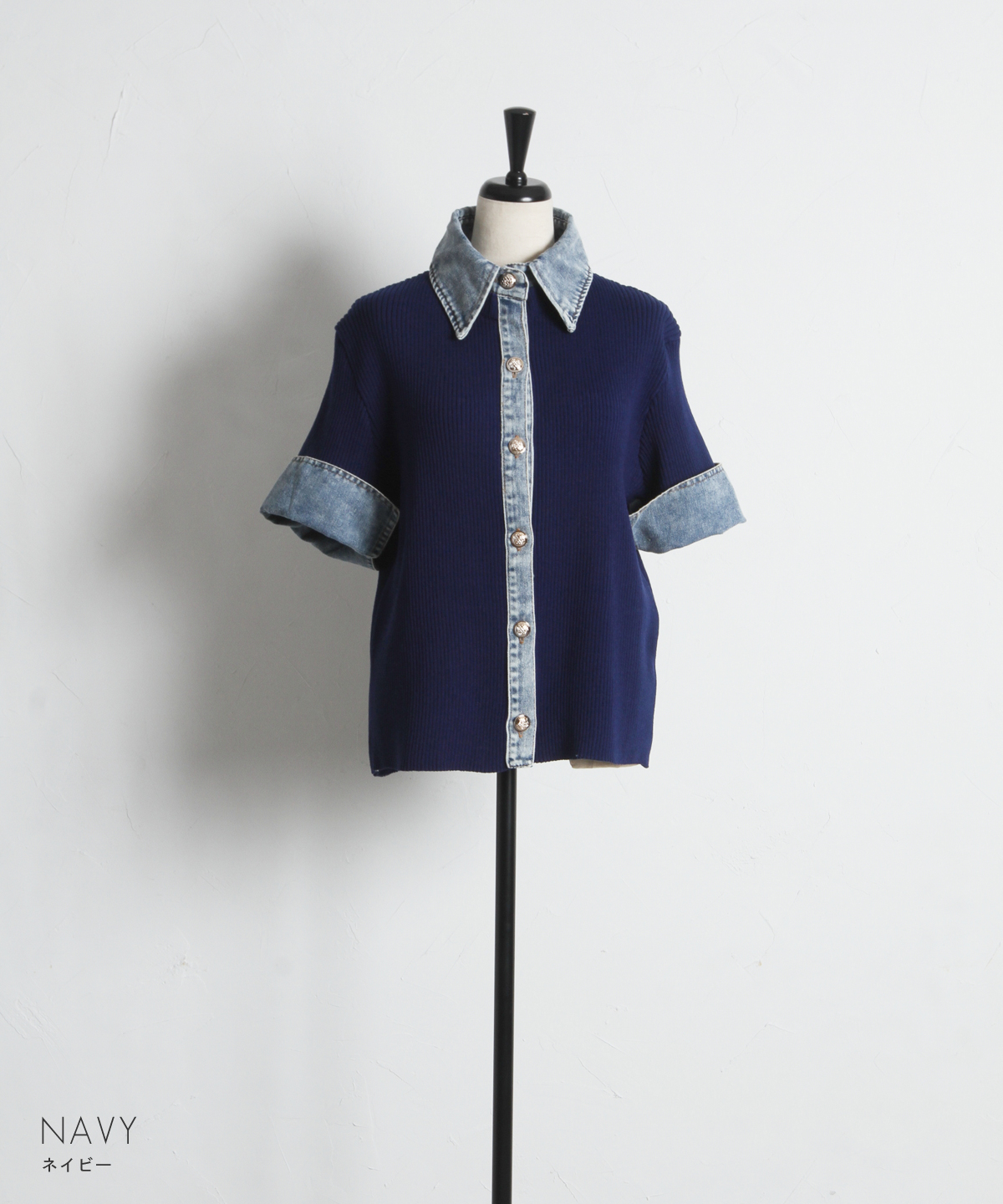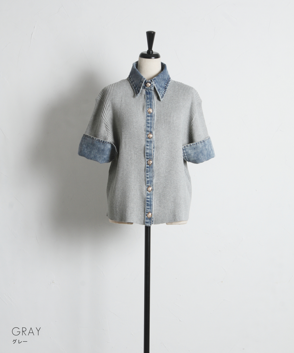リブの柔らかな素材感と、デニムのカジュアルな表情を掛け合わせた1枚です。