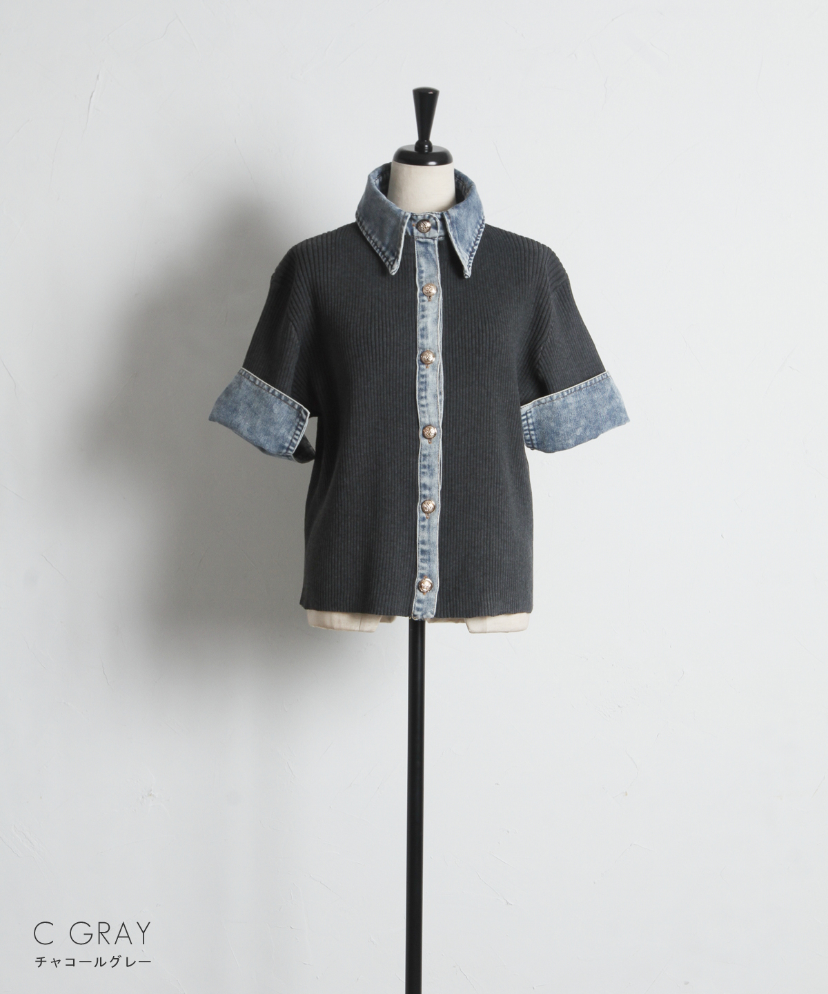 襟元や前立て、袖口にデニムを配したエッジの効いたデザインが、いつものボトムスに合わせるだけで洗練されたスタイルを叶えます。