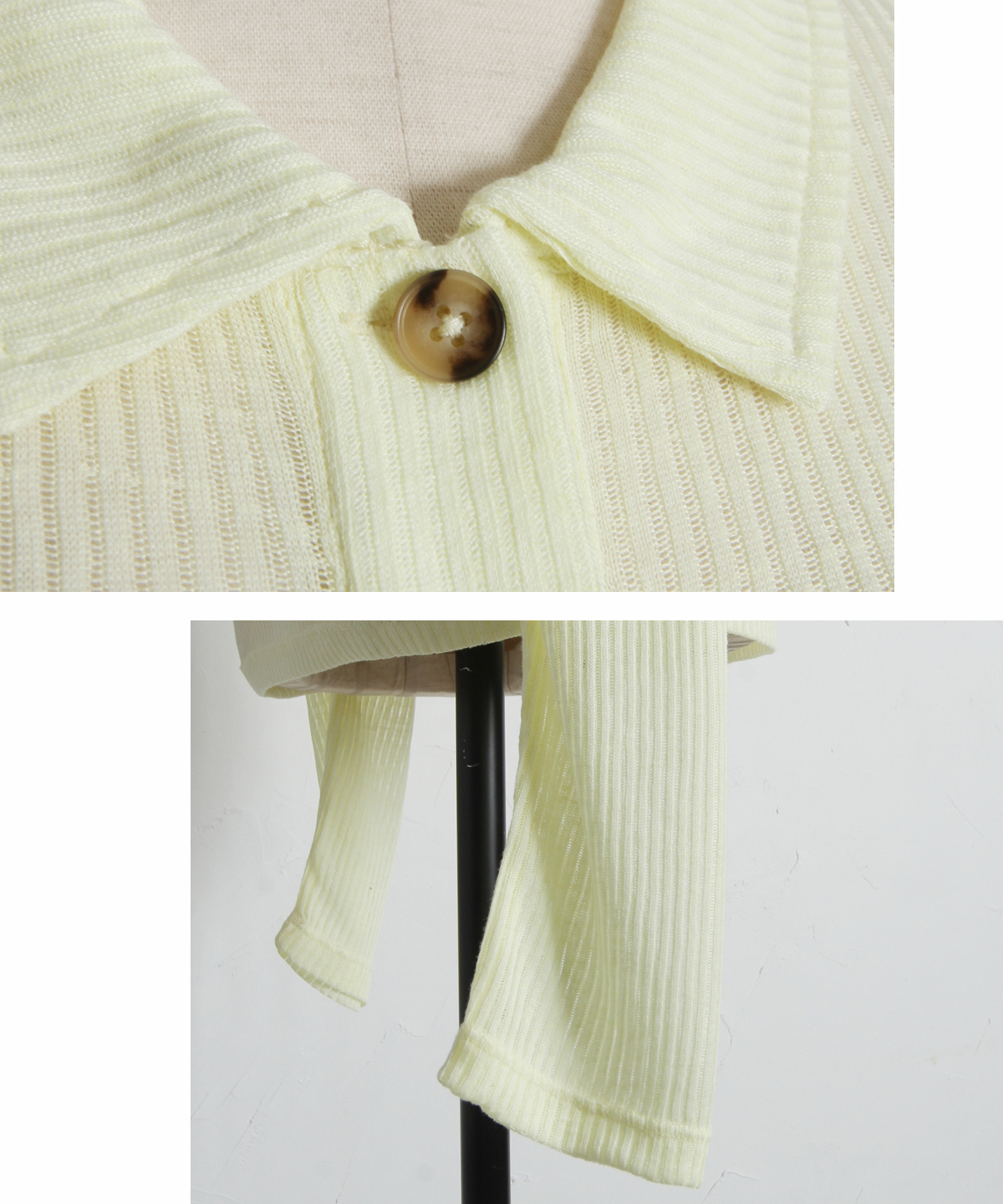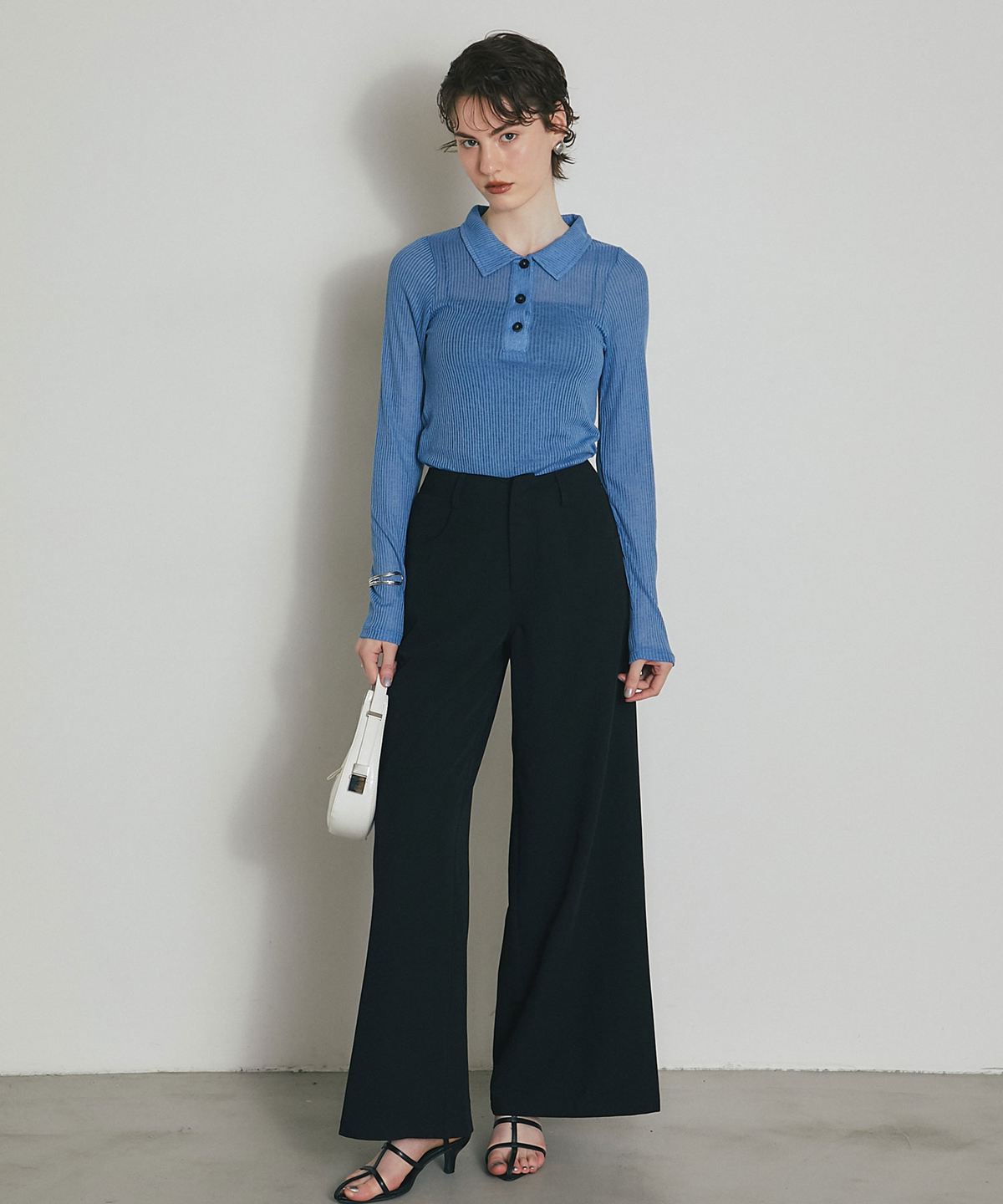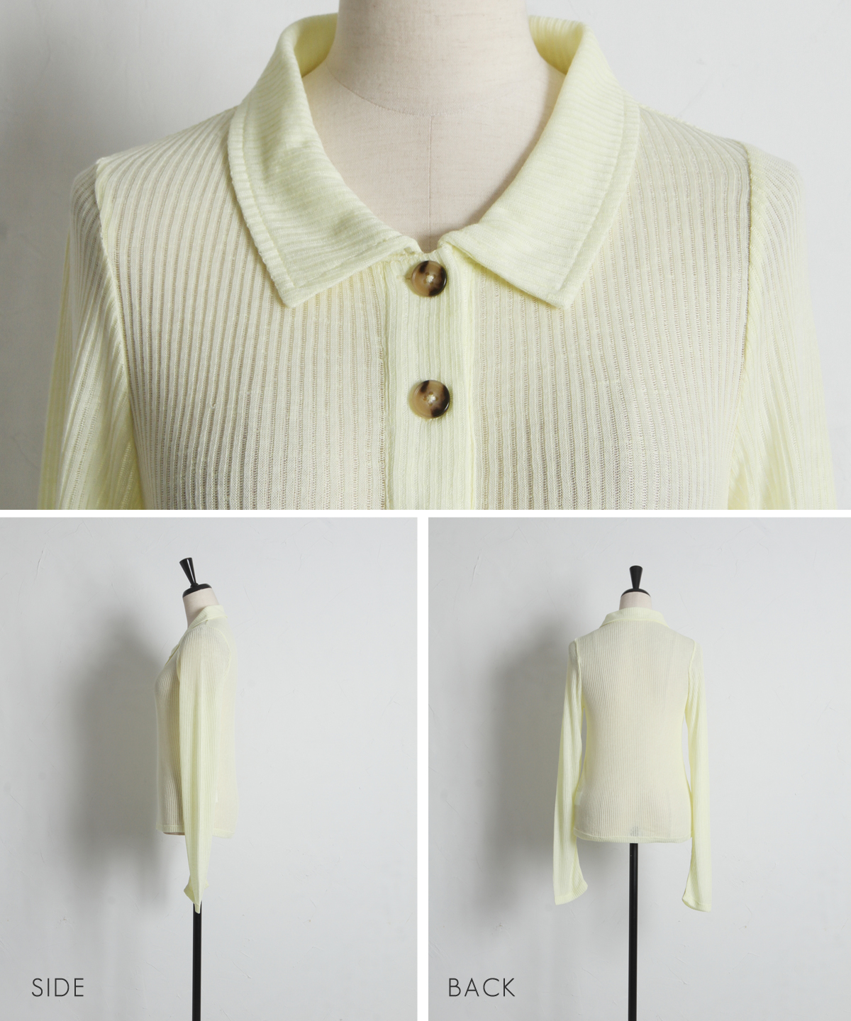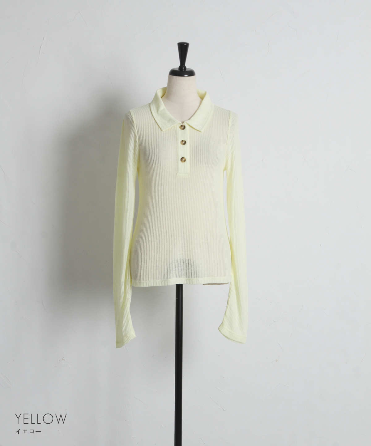 繊細なリブ編みのシアー素材を使用した、今季らしい抜け感漂うポロトップス。