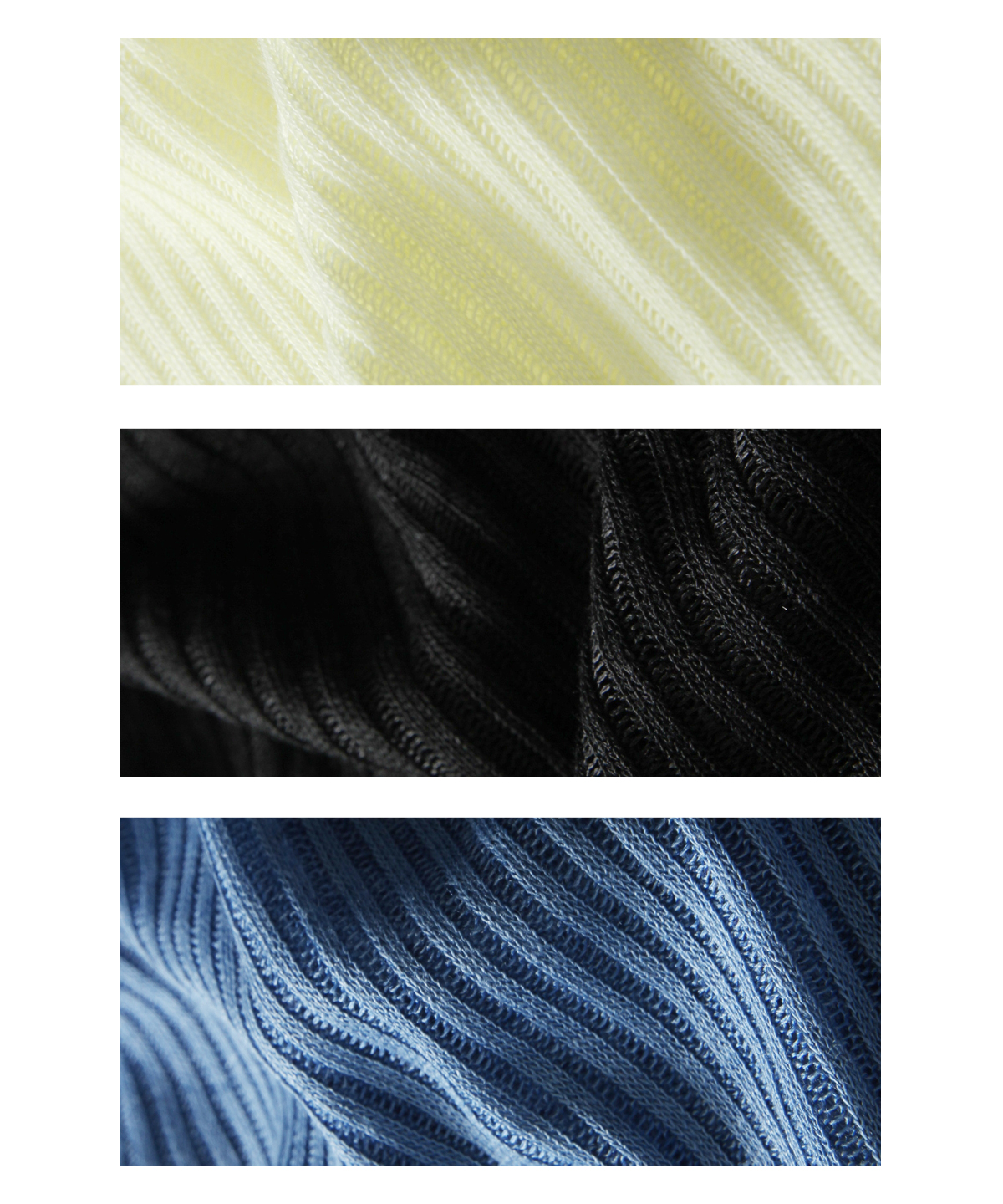 体に優しくフィットするリブ素材は、着心地が良くシルエットを美しくキープ。