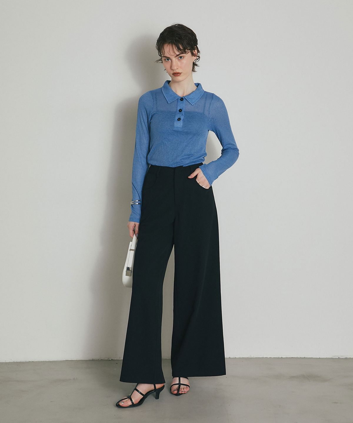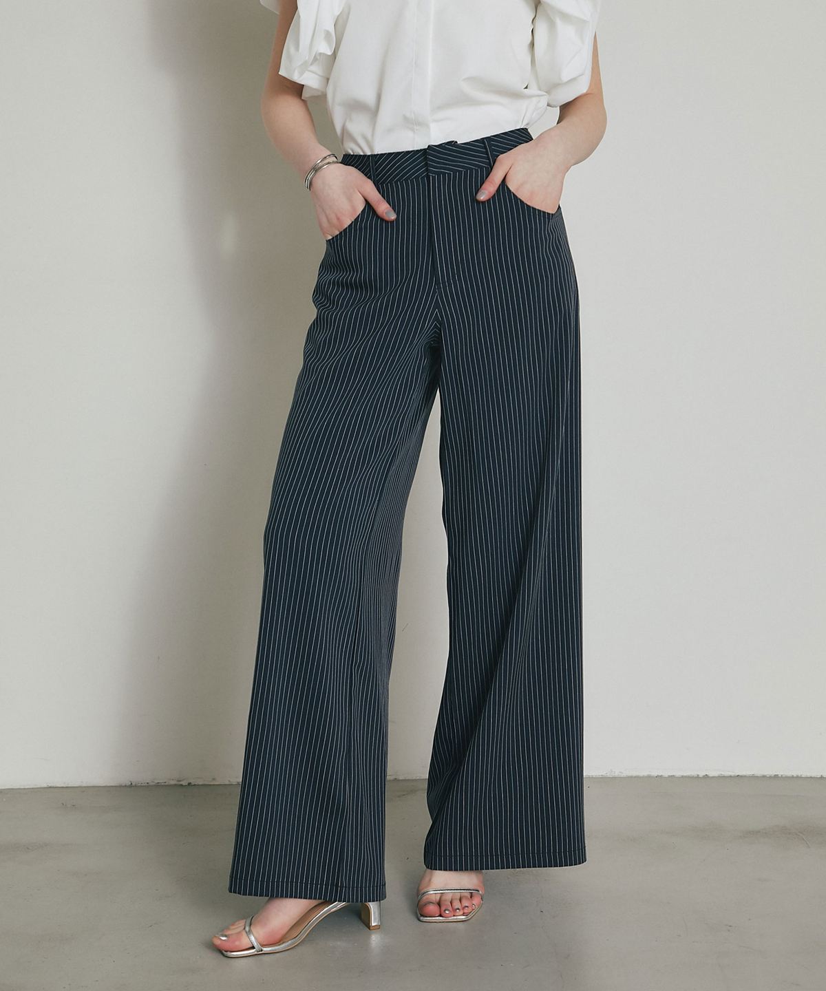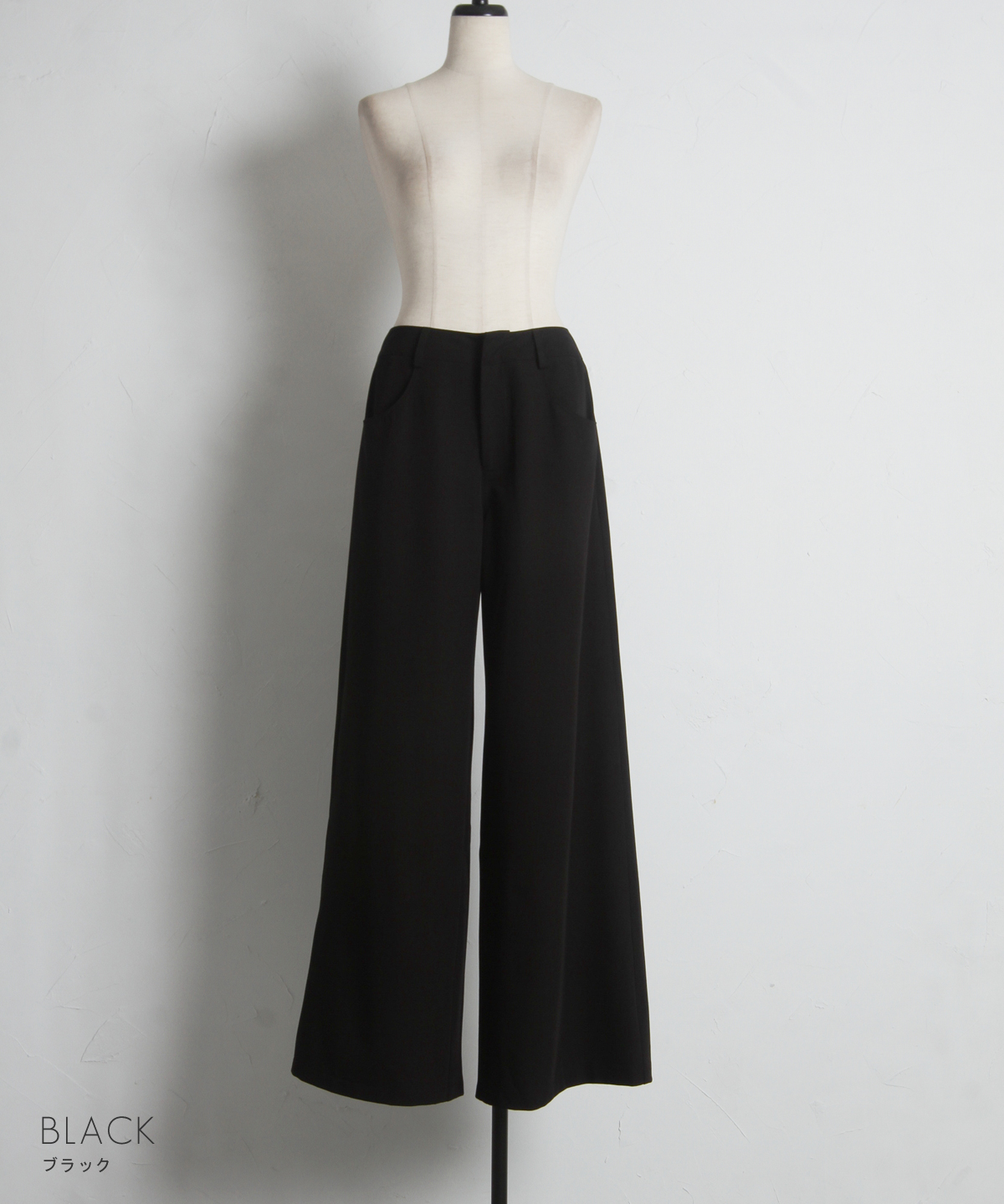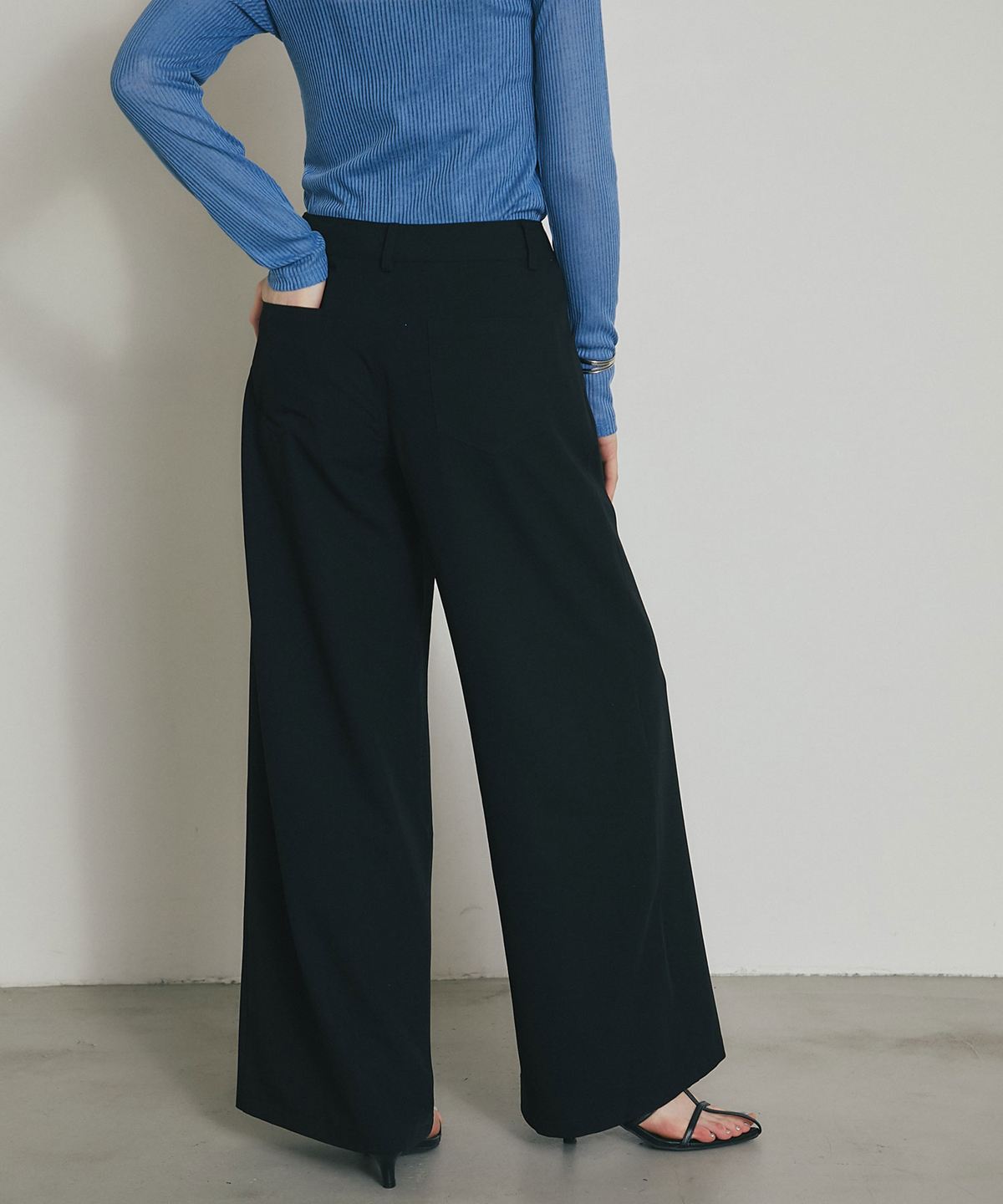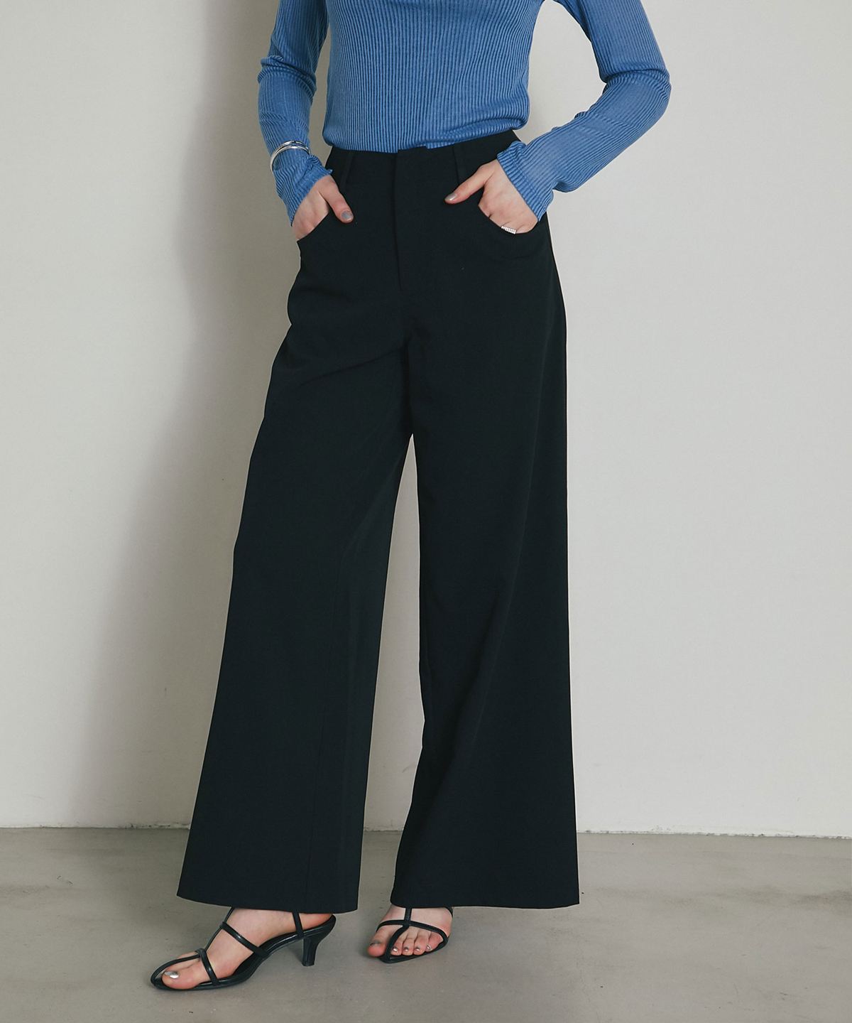 すとんと落ちるストレートラインが脚長効果を発揮するワイドパンツ。