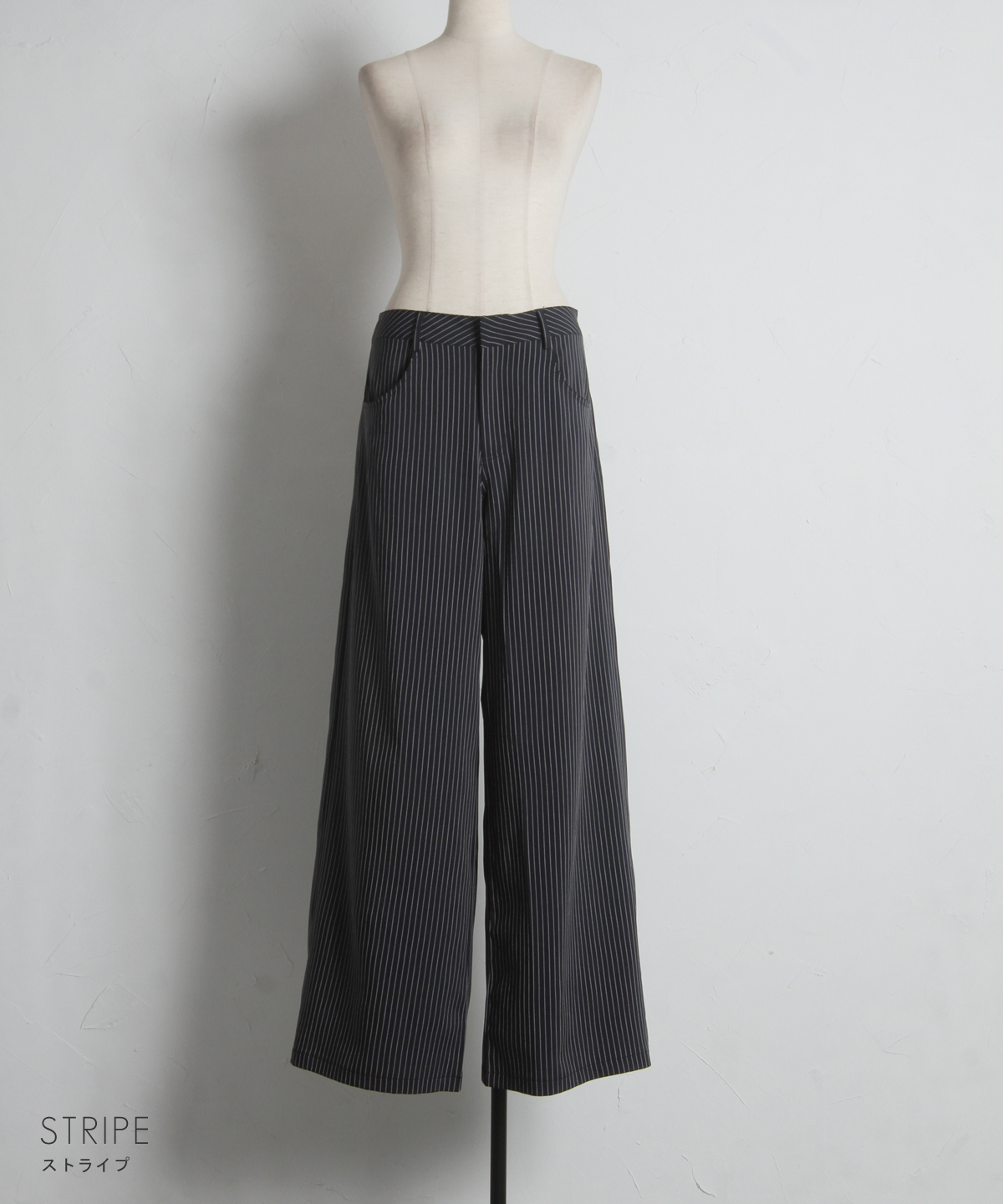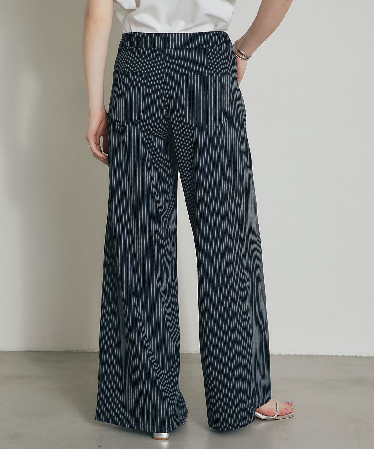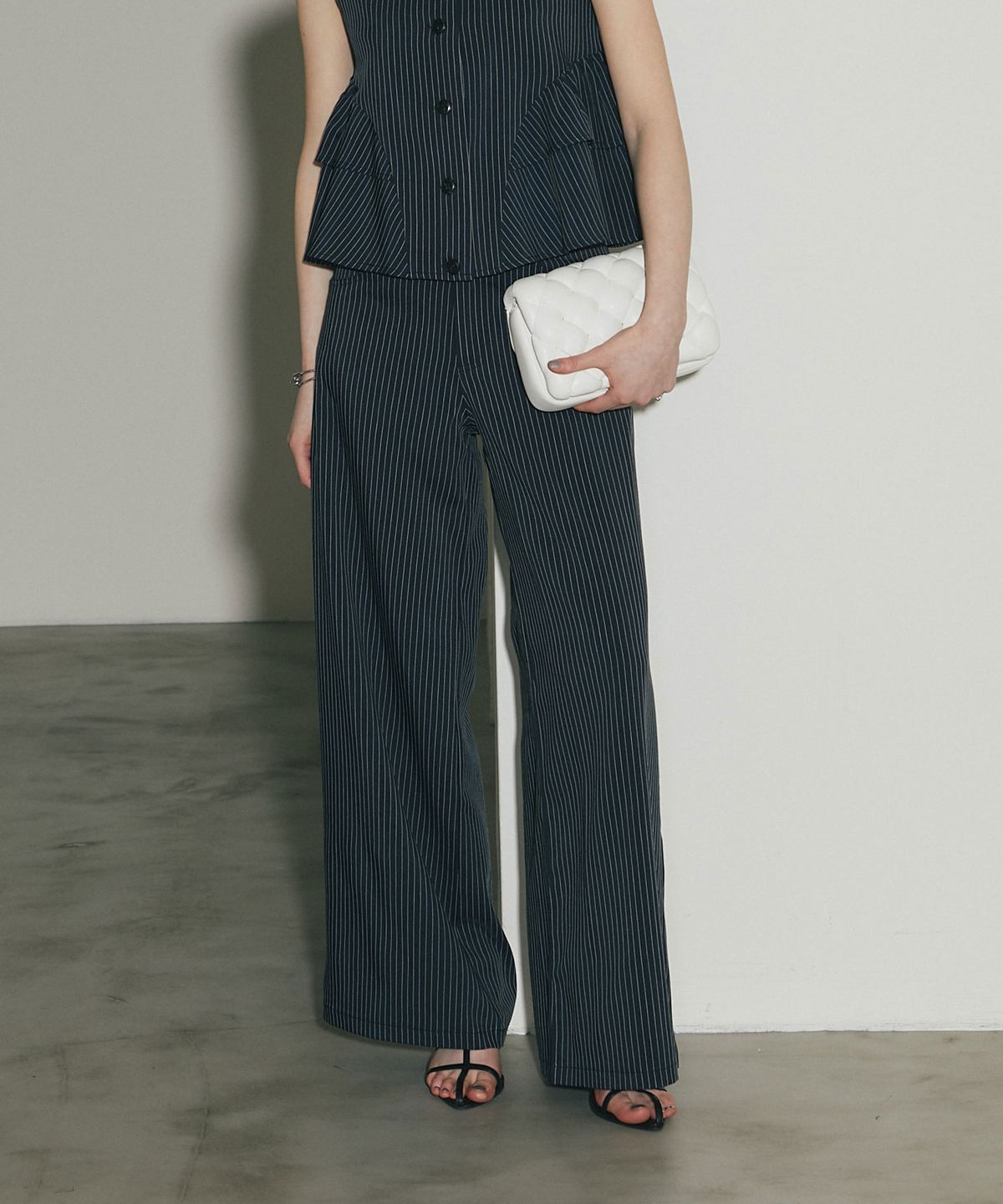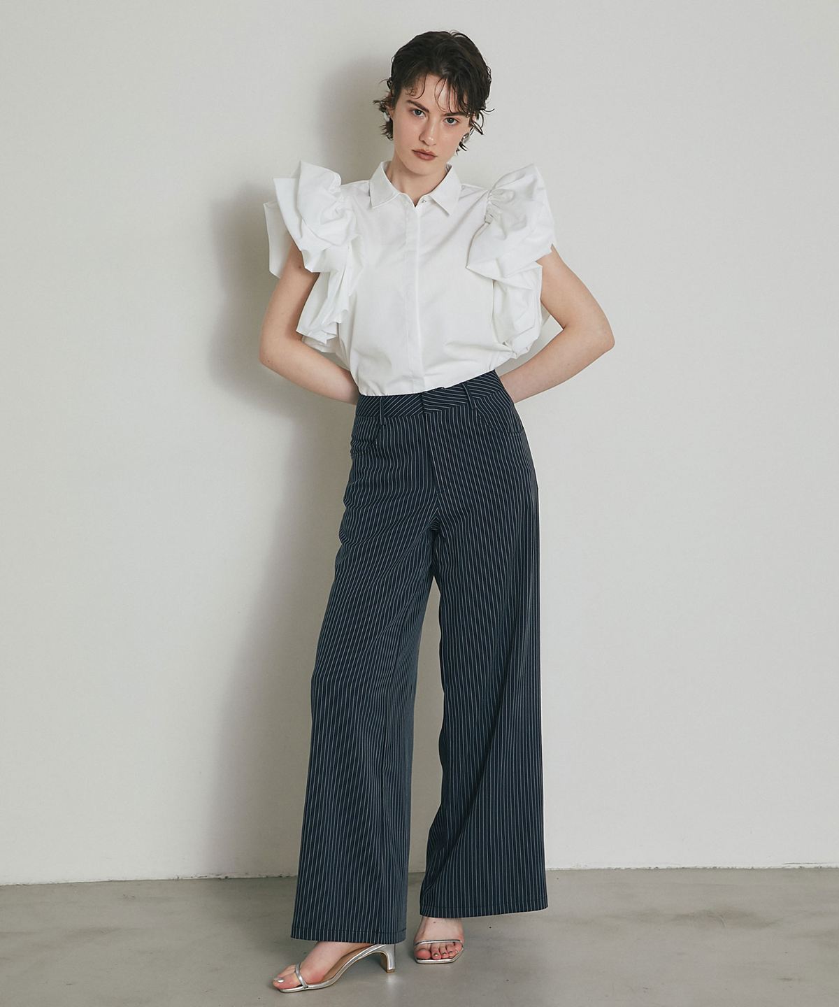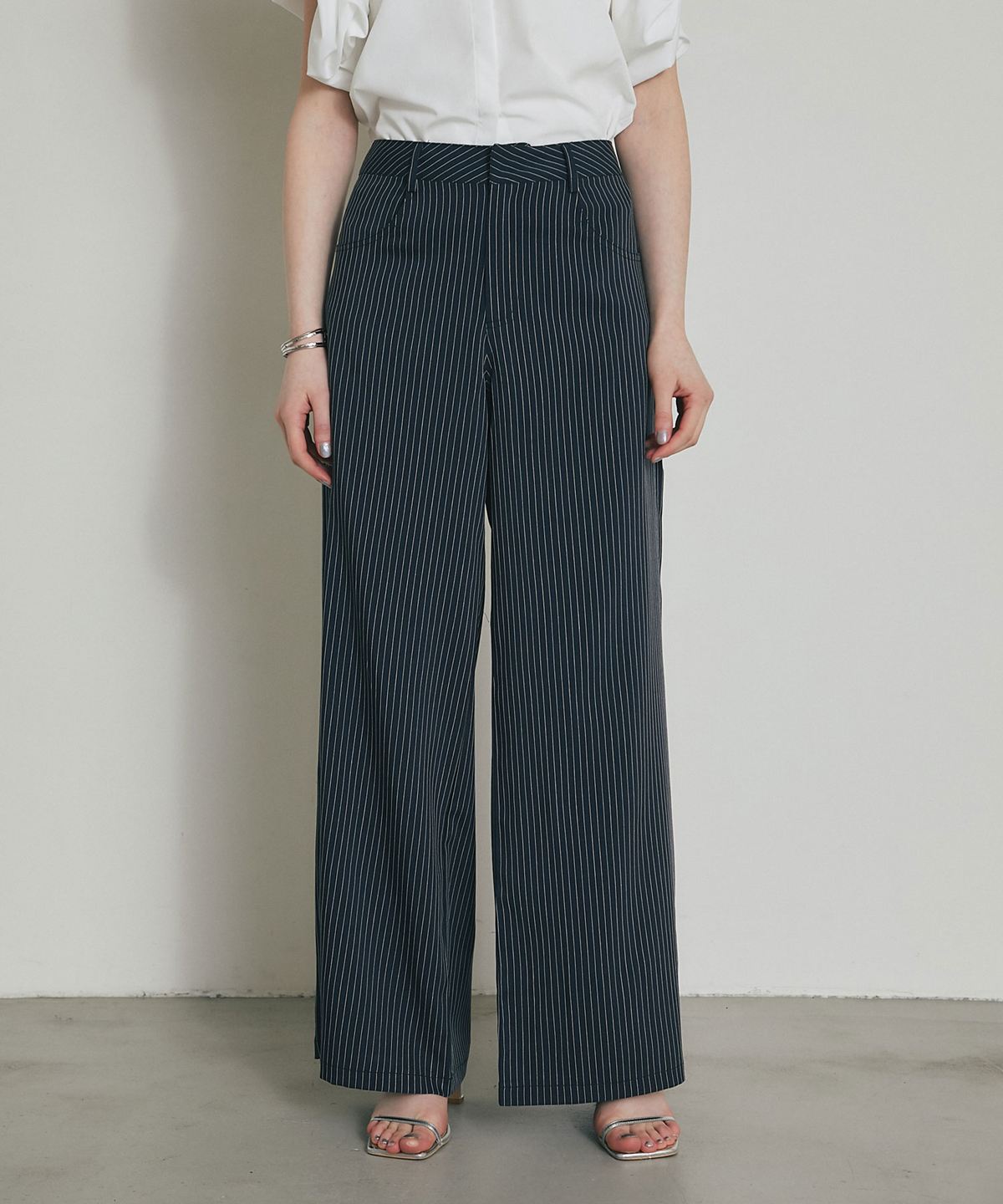 すとんと落ちるストレートラインが脚長効果を発揮するワイドパンツ。