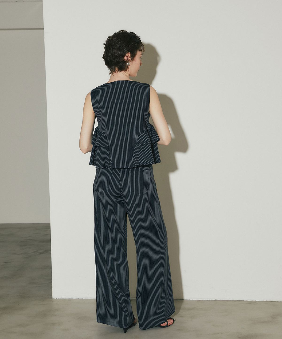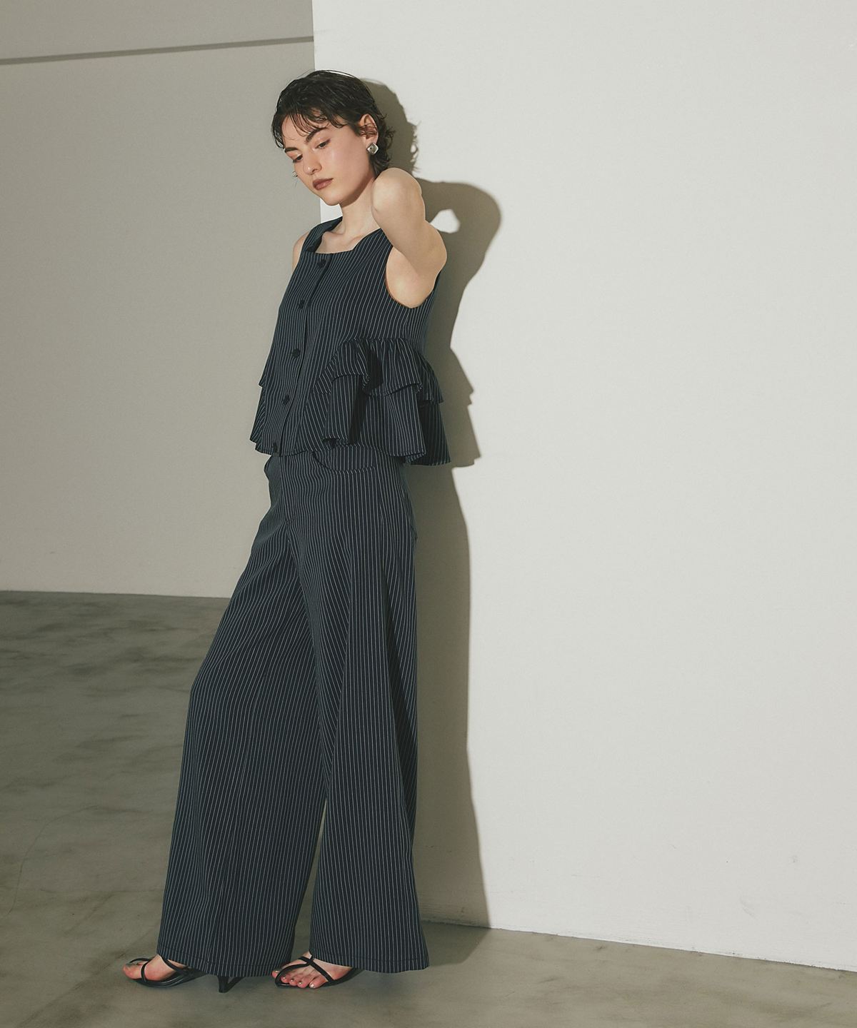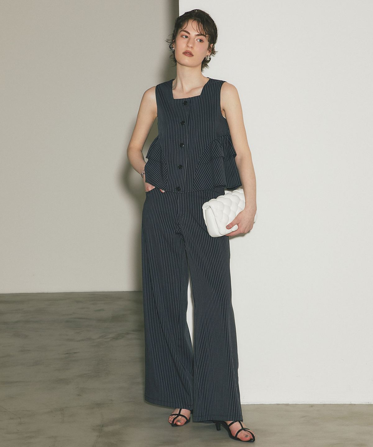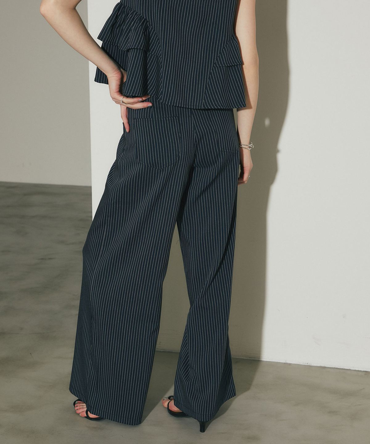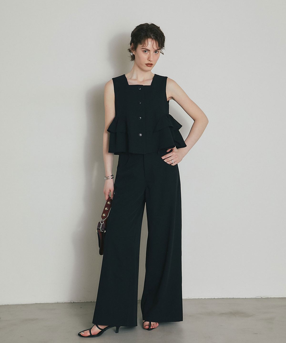 すとんと落ちるストレートラインが脚長効果を発揮するワイドパンツ。