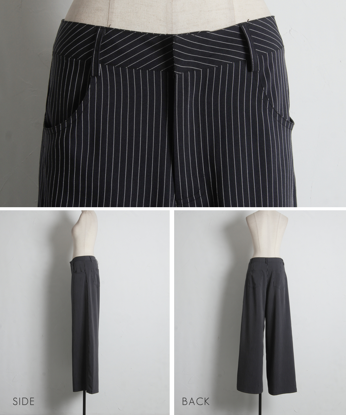 ハイウエスト設計で腰回りはすっきりと、バックウエストゴム仕様で快適な穿き心地を両立しました。