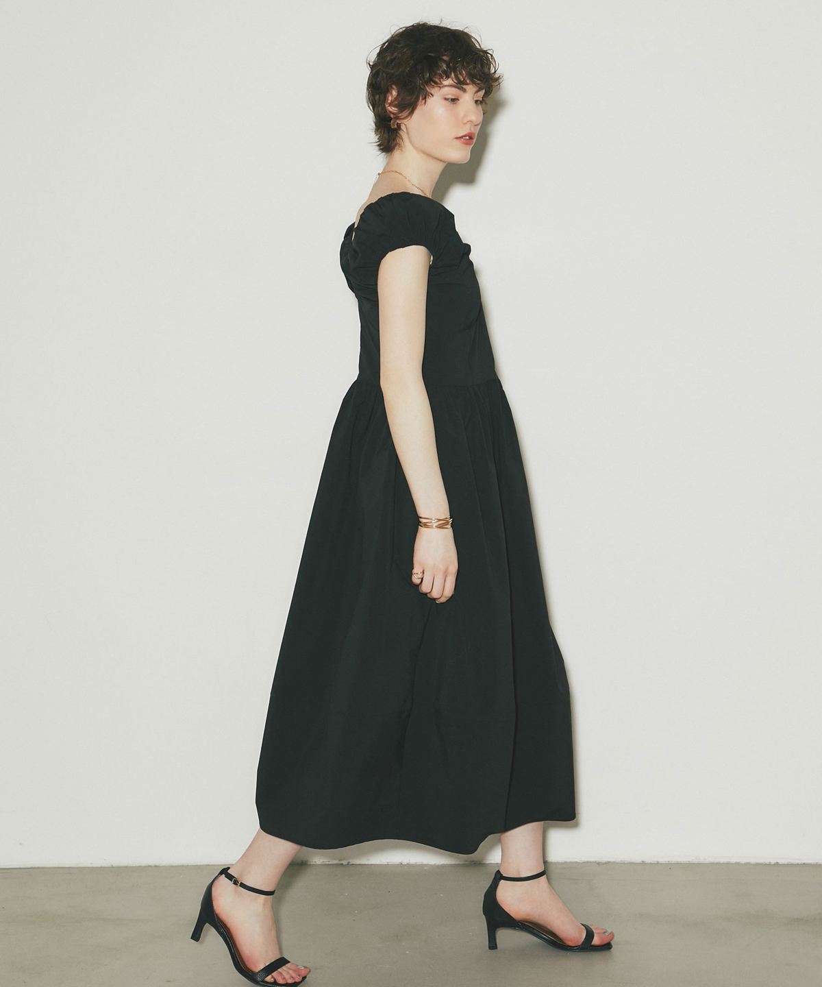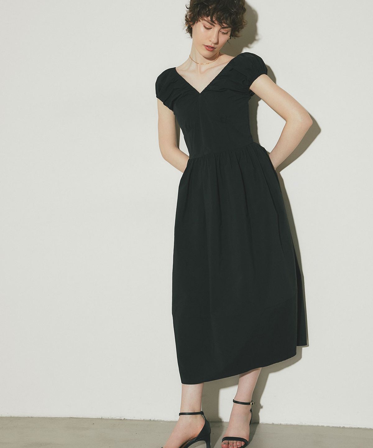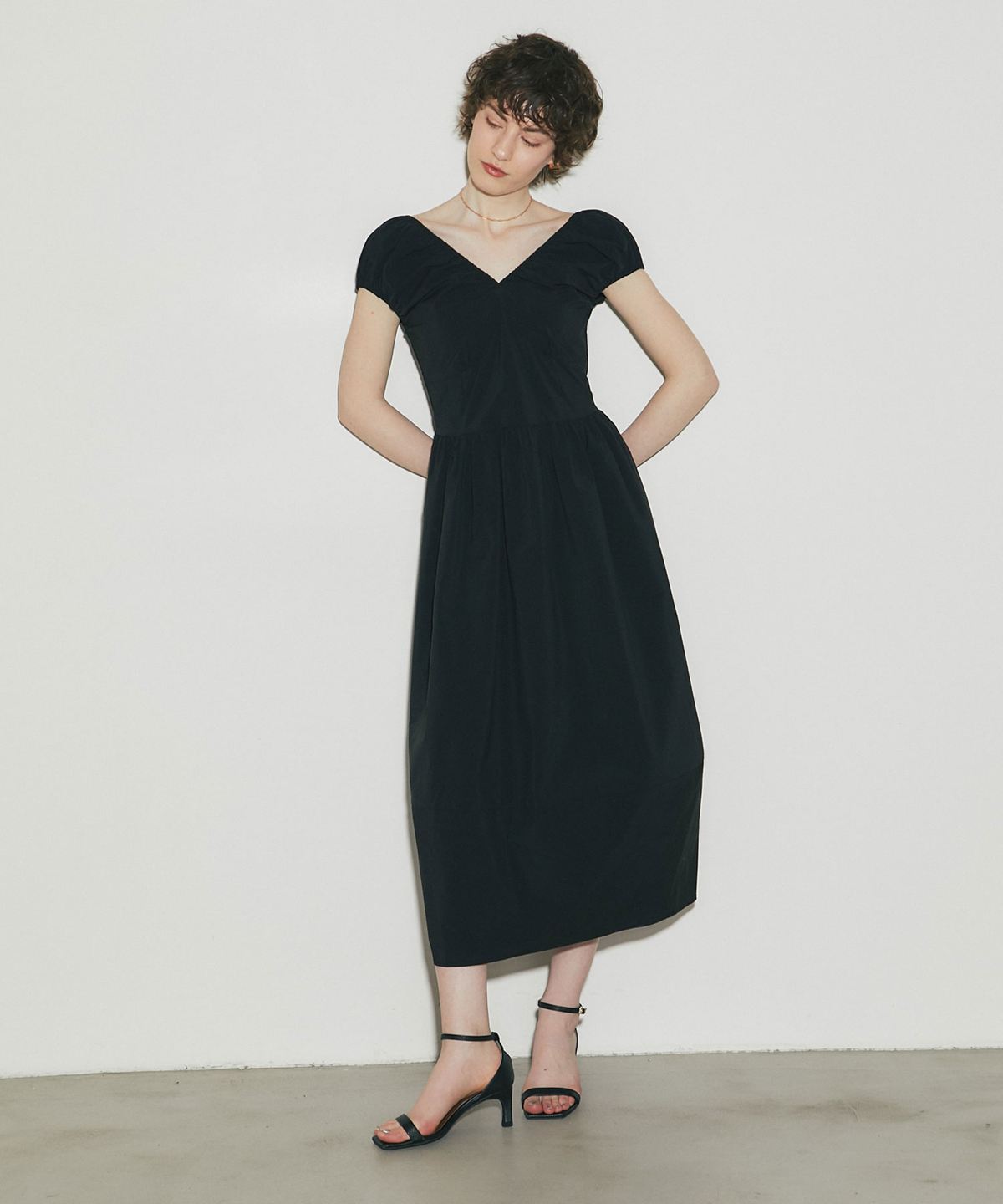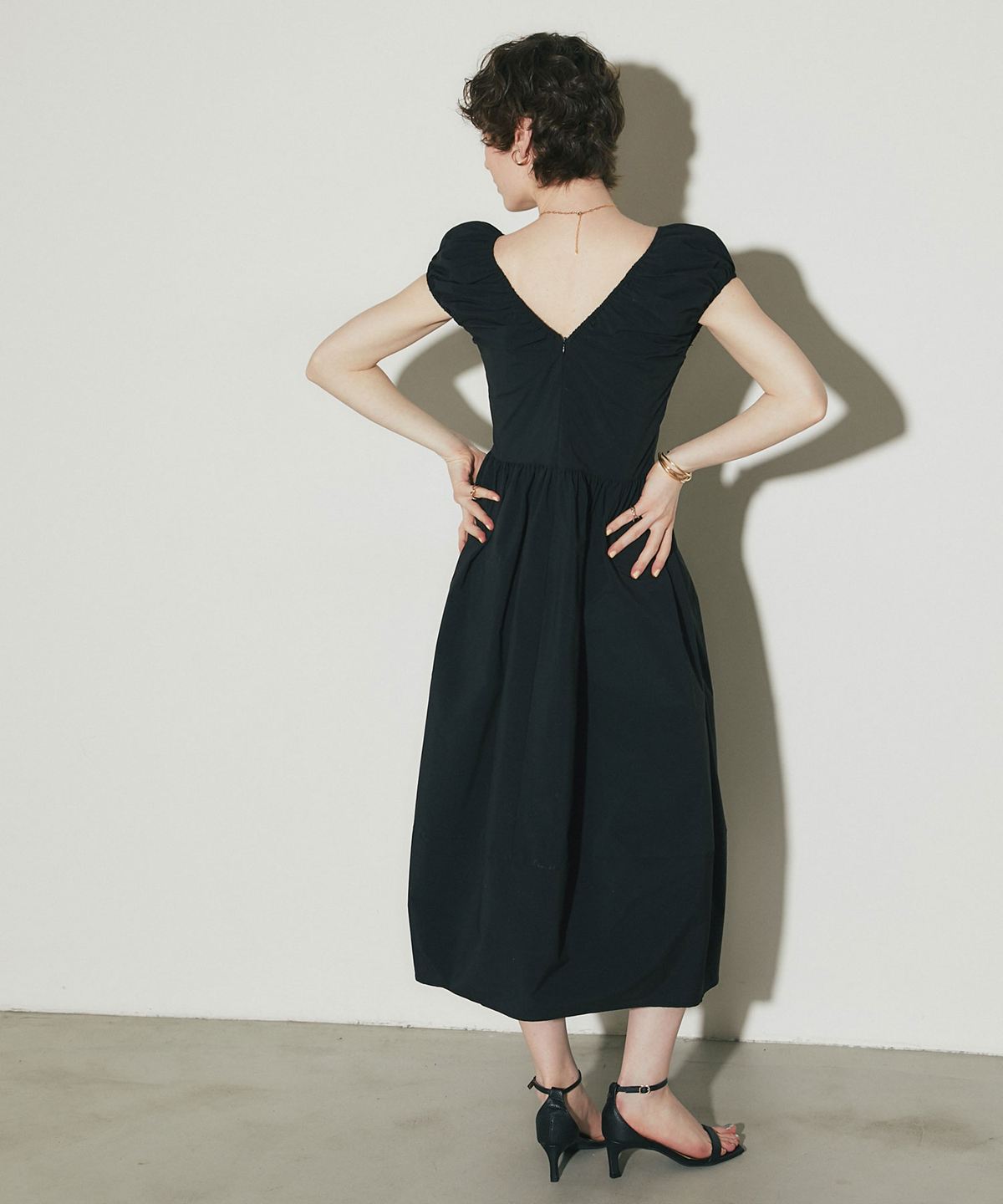 洗練されたシャーリング使いと美しいシルエットが、大人のエレガンスを体現するドレス。
