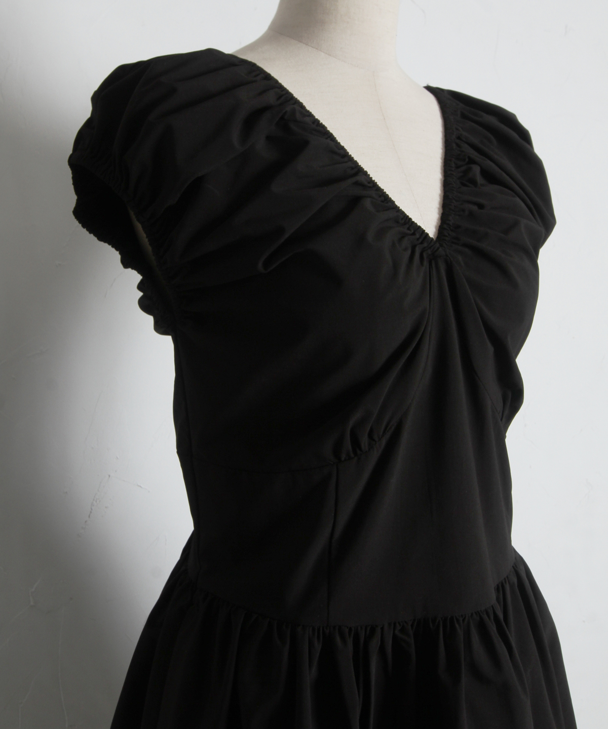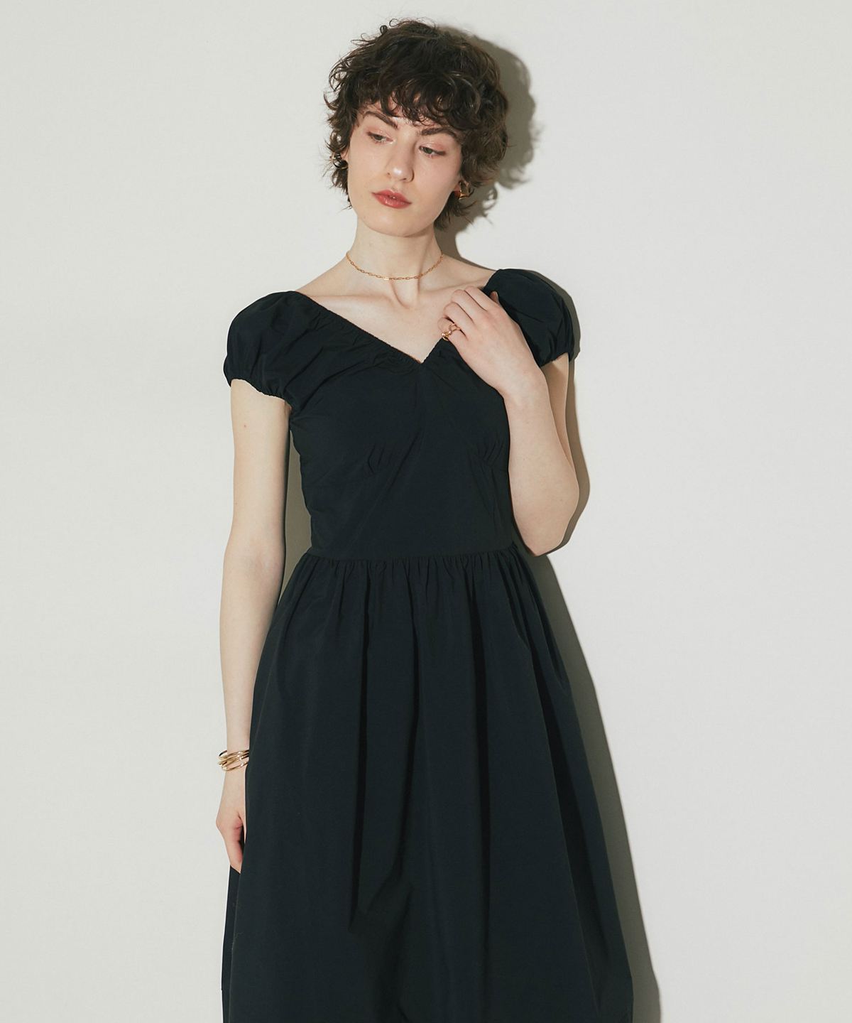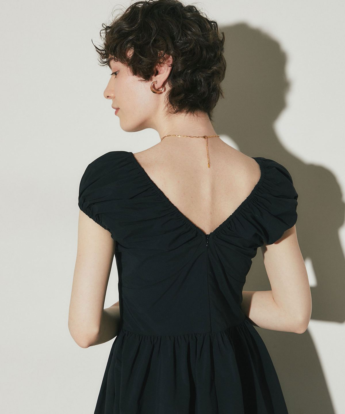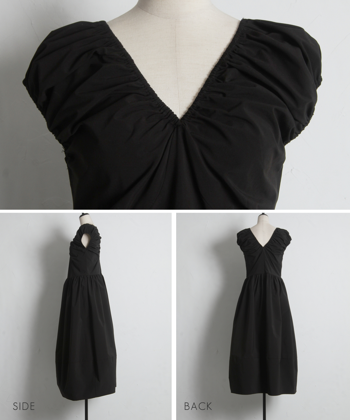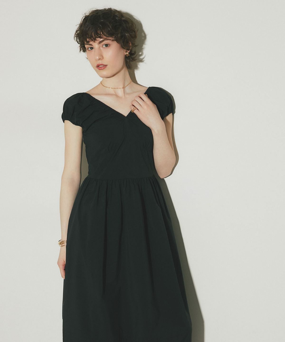洗練されたシャーリング使いと美しいシルエットが、大人のエレガンスを体現するドレス。