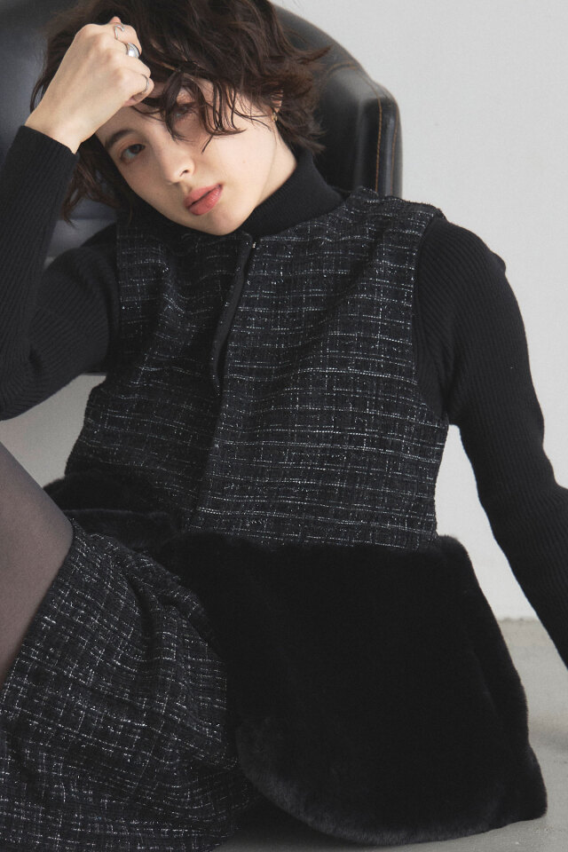 裾ファーツイードジレ\6,490