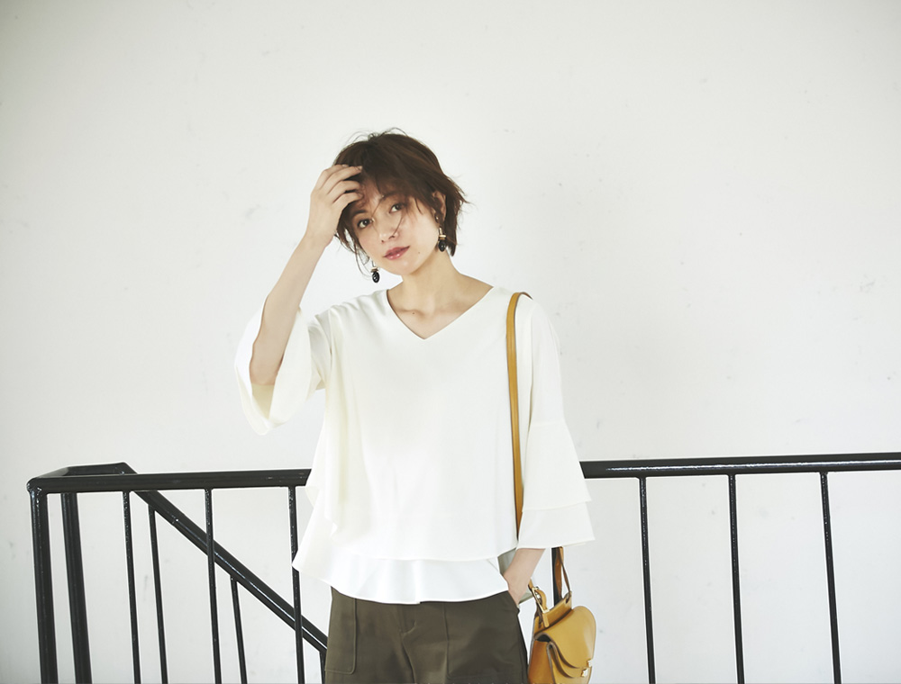 tops:シンプルVネックニットプルオーバー¥3,900+tax