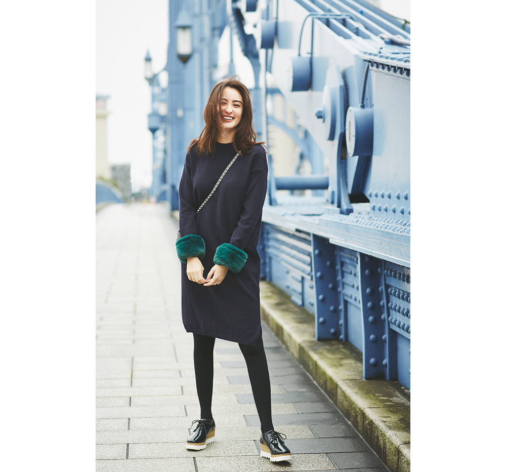 onepiece:袖ファー付きニットワンピース¥5,900+tax