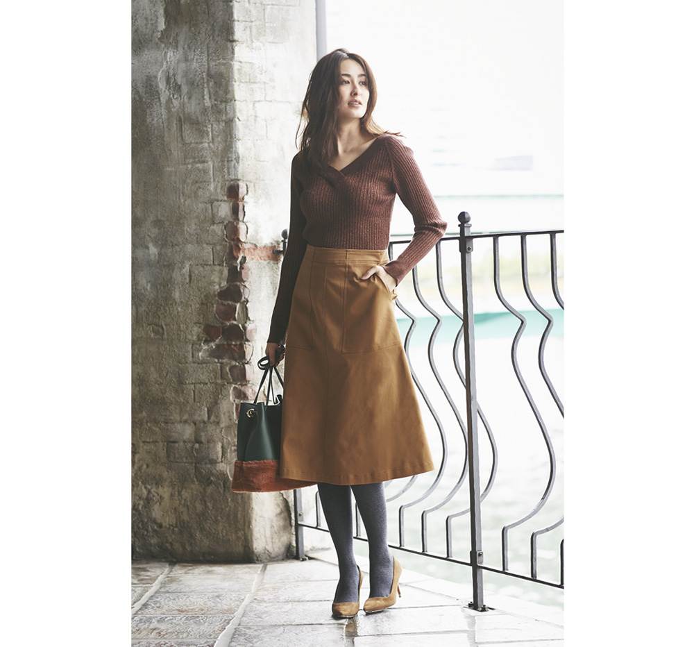 tops:2WAYラメニット¥3,900+tax bottoms:チノAラインスカート¥4,900+tax