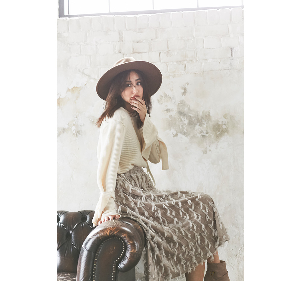 tops:リブカット袖リボントップス¥3,900+tax bottoms:ベロアフリンジスカート¥6,900+tax
