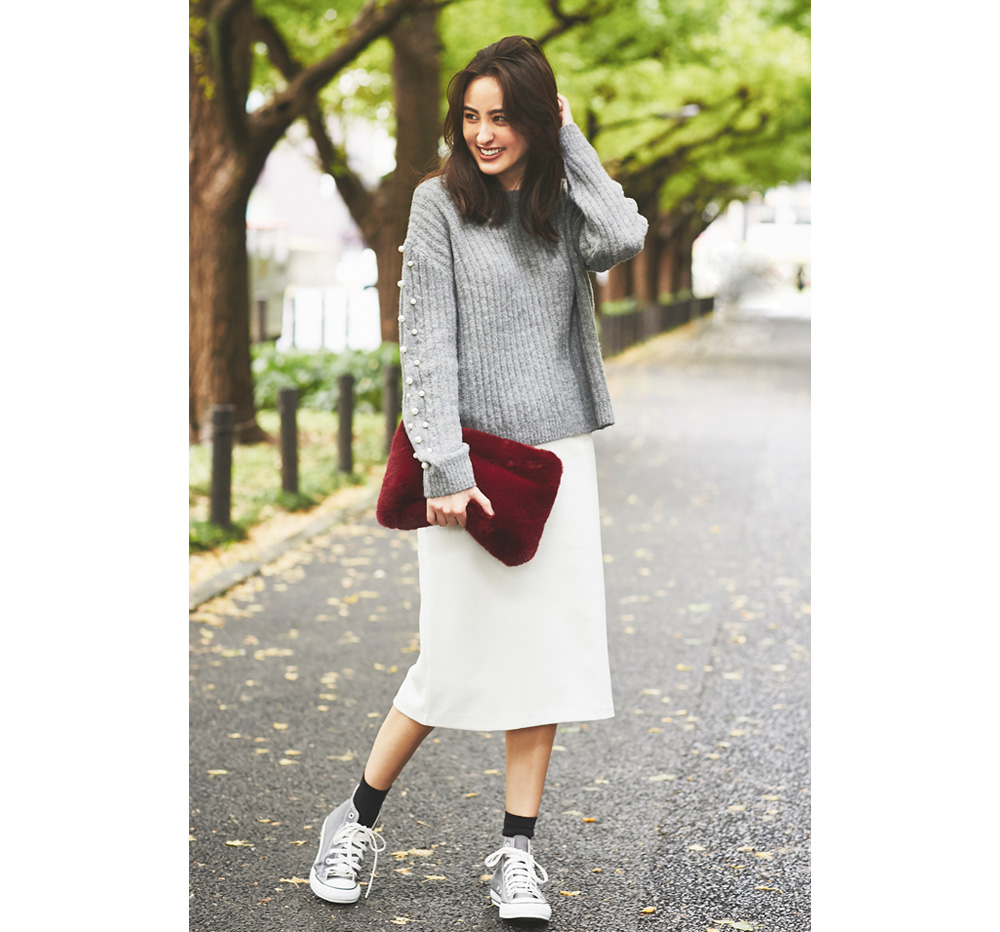 tops:ケーブル編みパール付きニット¥4,900+tax bottoms:TRフラノタイトスカート¥4,900+tax